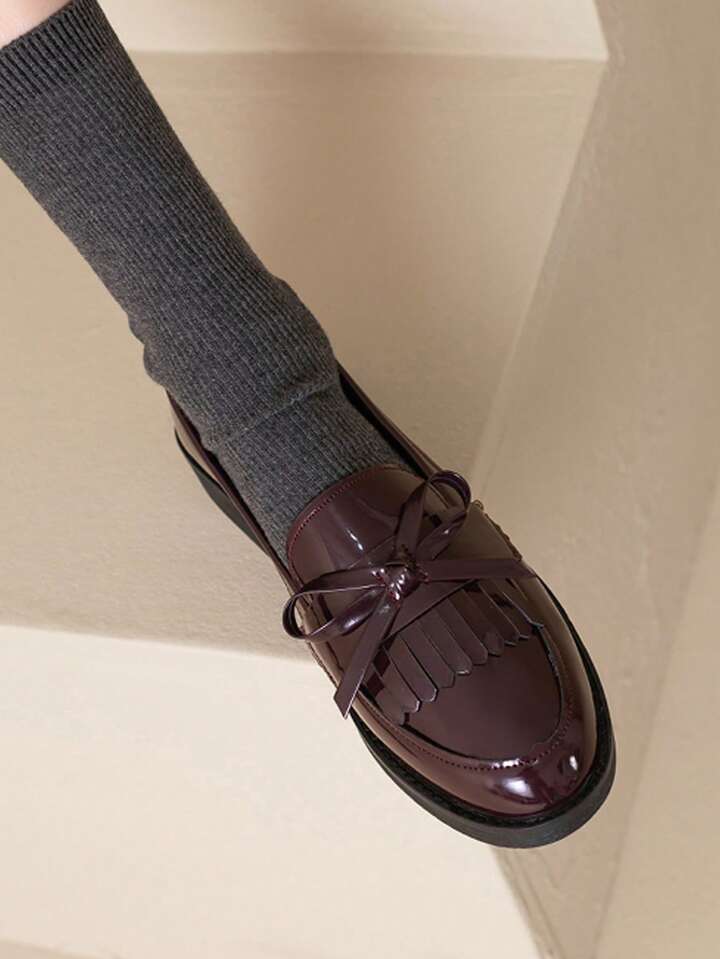 Kawaii Mocasines planos con decoración de lazo y flecos, color BURDEOS, nuevos para Año Nuevo, San Valentín