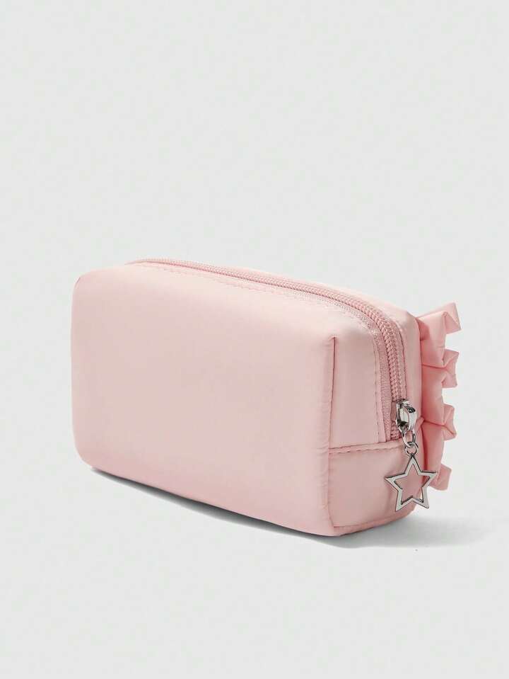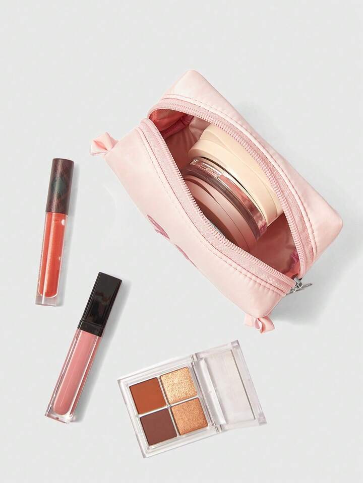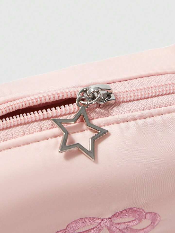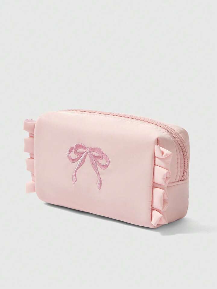Kawaii Bolsa de cosméticos rosa linda con bordado de lazo