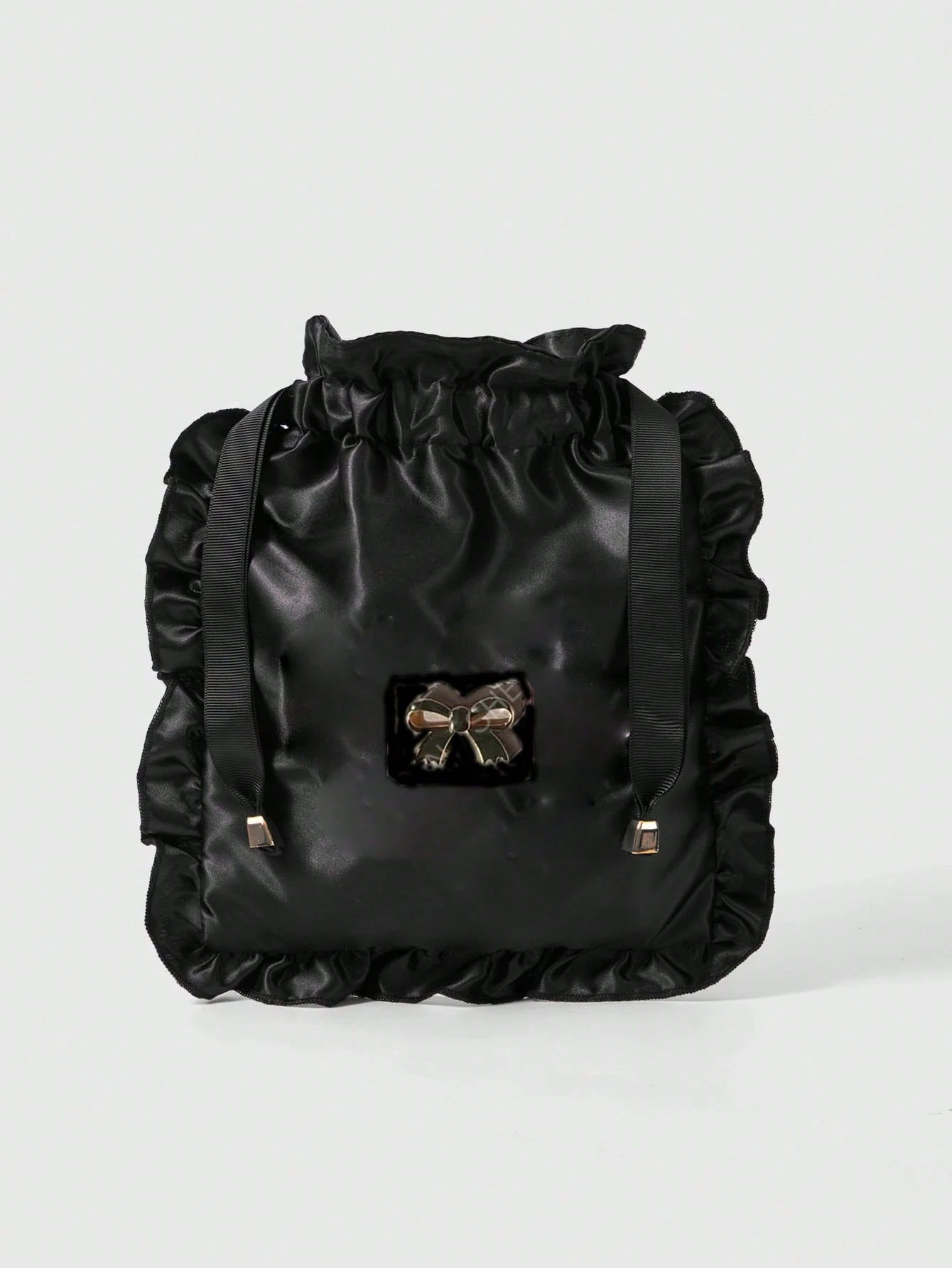 Kawaii Bolsa de cosméticos con lazo, bolsa de almacenamiento de ropa interior portátil para viajes con cordón