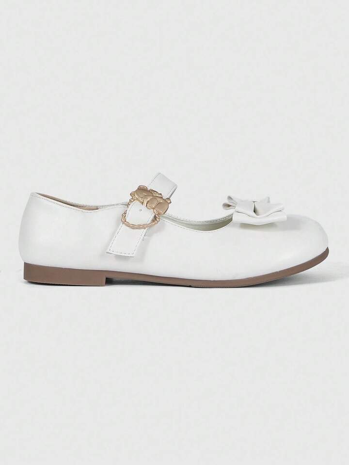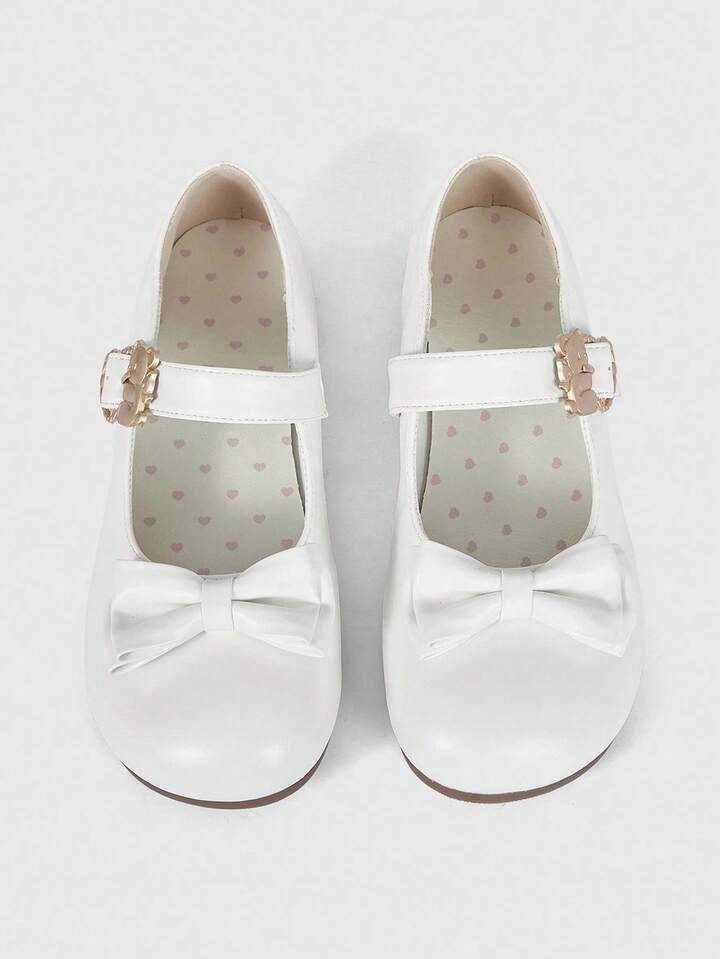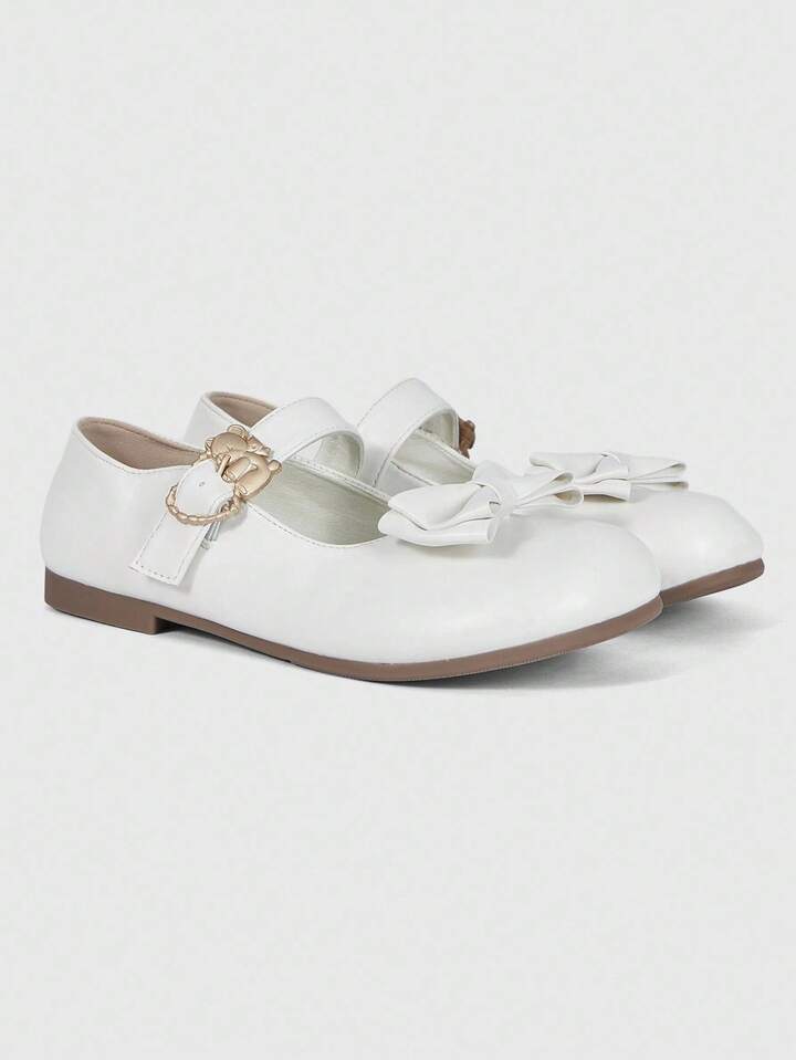 Kawaii Zapatos de cuero tipo bailarina con lazo y punta cerrada para mujer