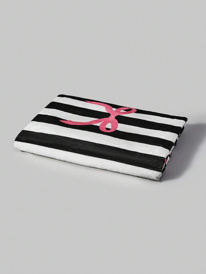 Kawaii Manta de felpa cálida y portátil con estampado de rayas blancas y negras con lazo para la sala de estar