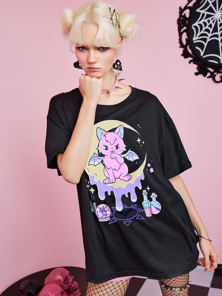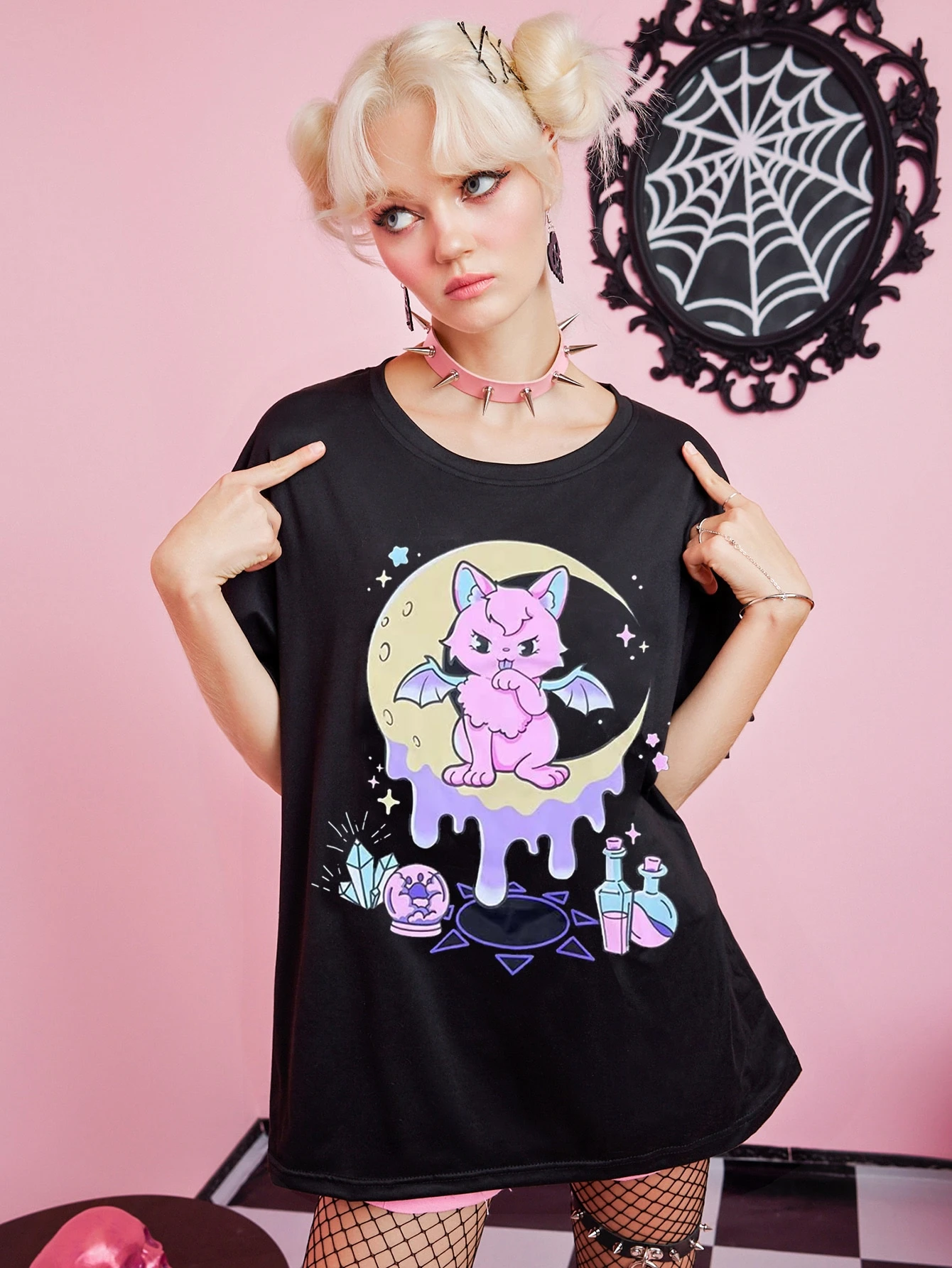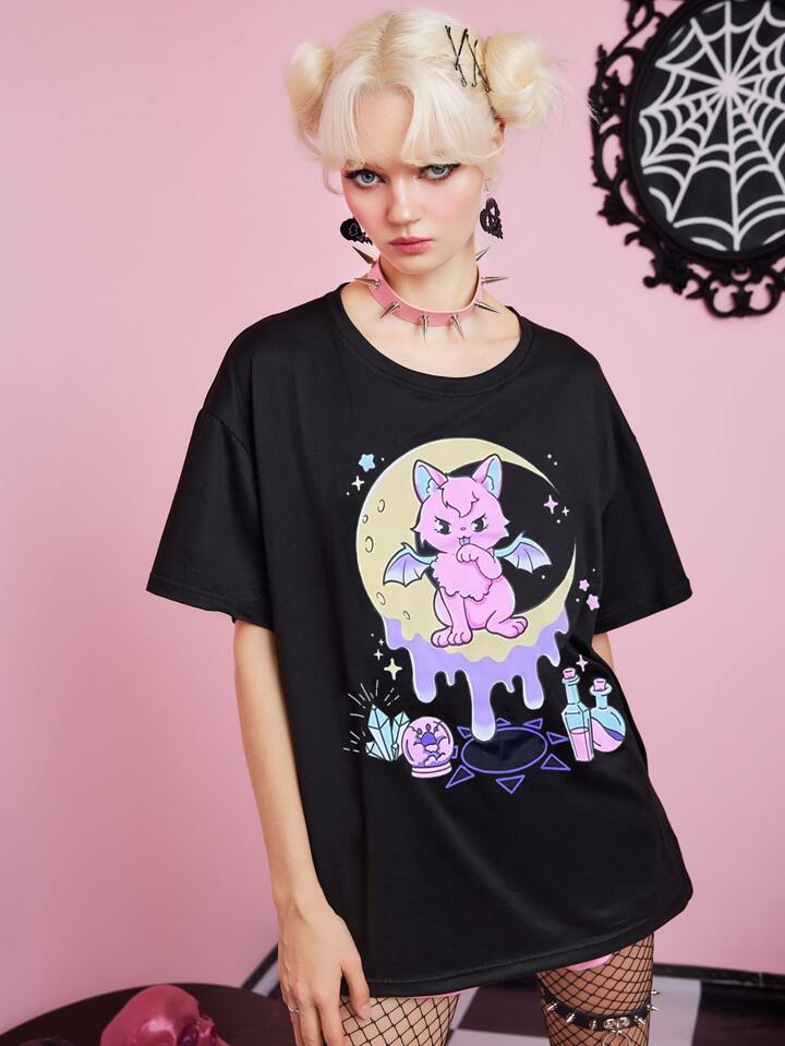 Kawaii Camiseta amplia con estampado de dibujos animados
