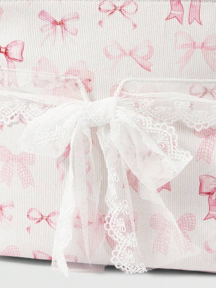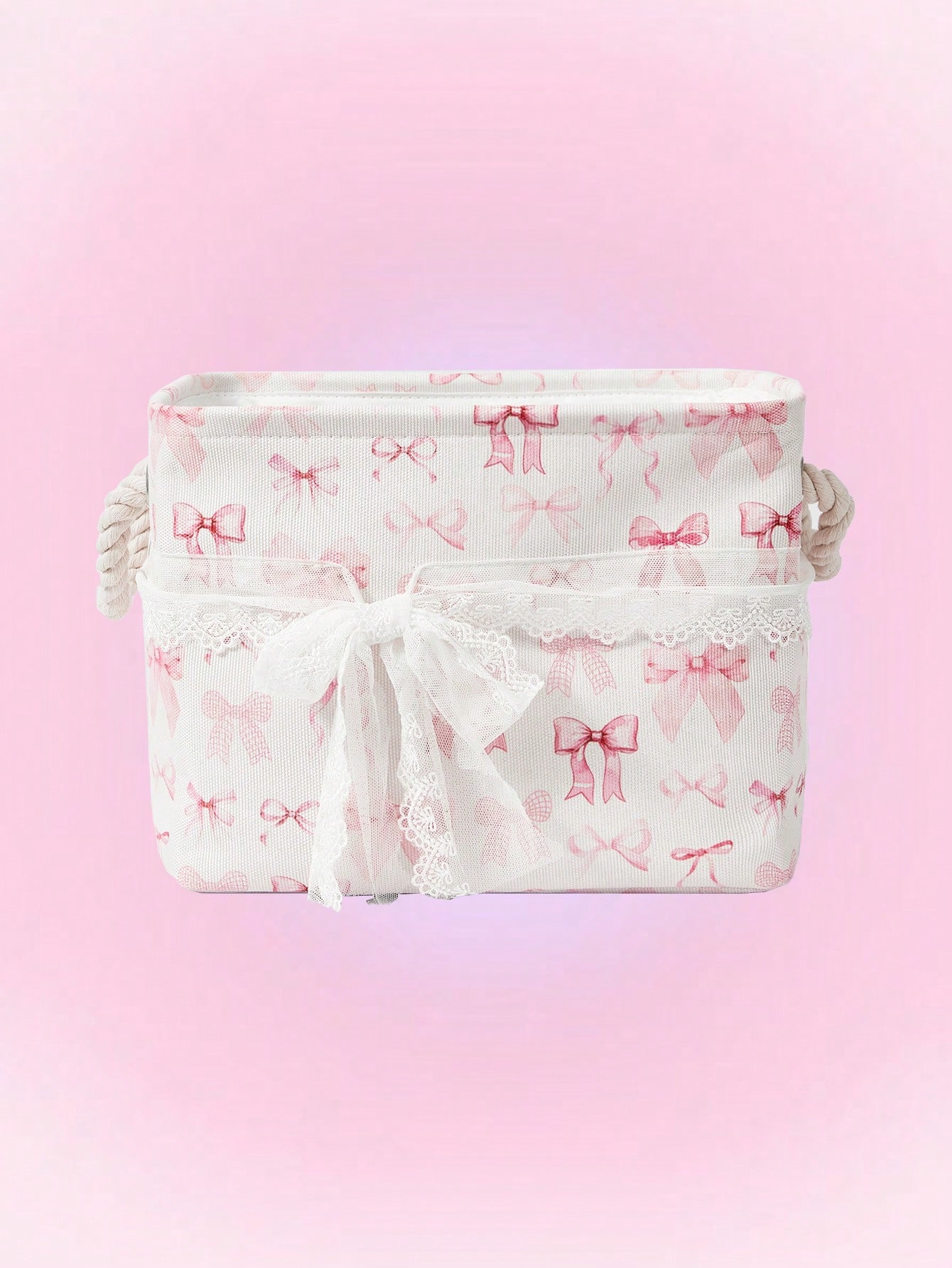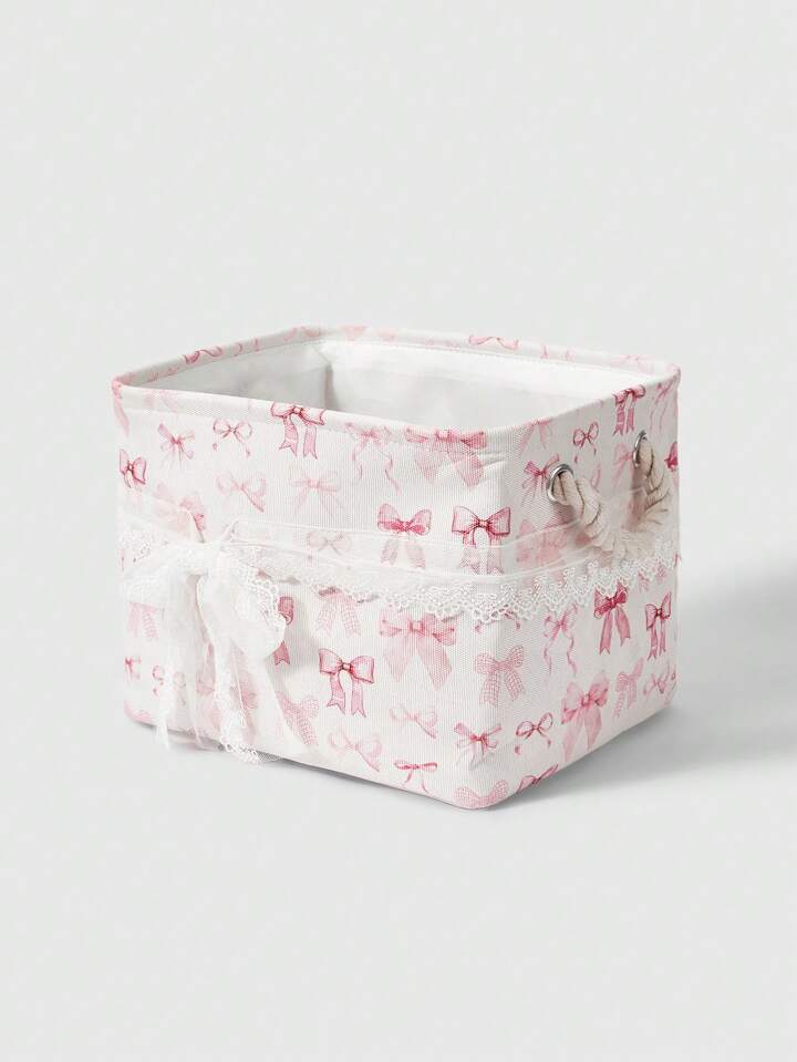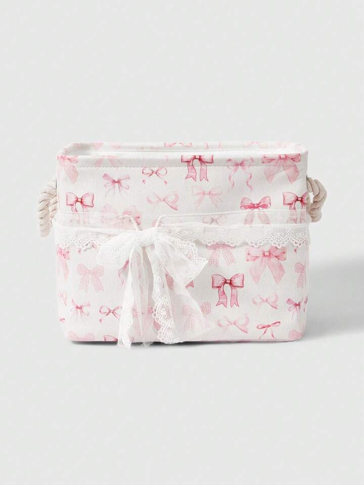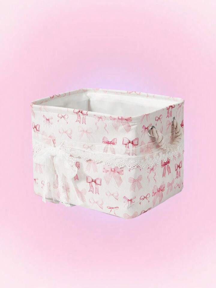 Kawaii Cesta de almacenamiento y lavandería con lazo rosa de dibujos animados reforzada