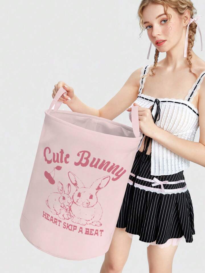 Kawaii Caja de almacenamiento plegable con diseño de conejo animado y gran capacidad