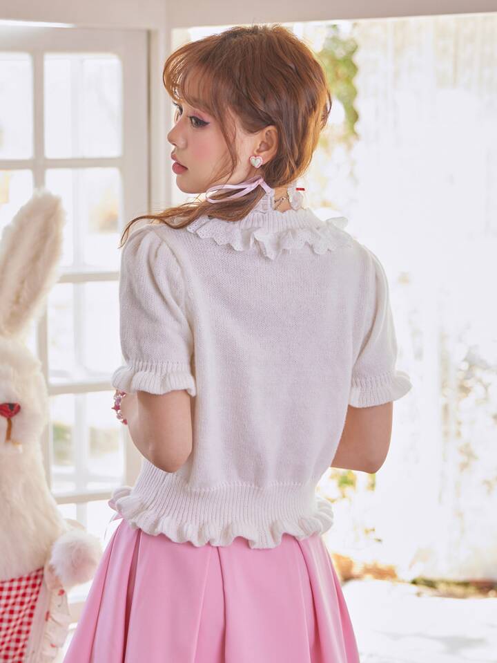 Kawaii Cárdigans de Mujer Lazo Encaje en contraste Volante fruncido Botón delantero Dibujos animados Casual