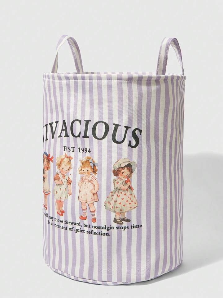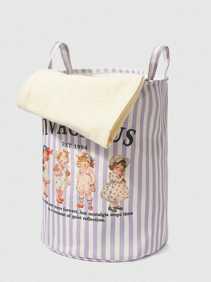 Kawaii Caja de almacenamiento plegable divertida con diseño retro de niña de dibujos animados, cesto de ropa con gran capacidad (44*24*64cm)