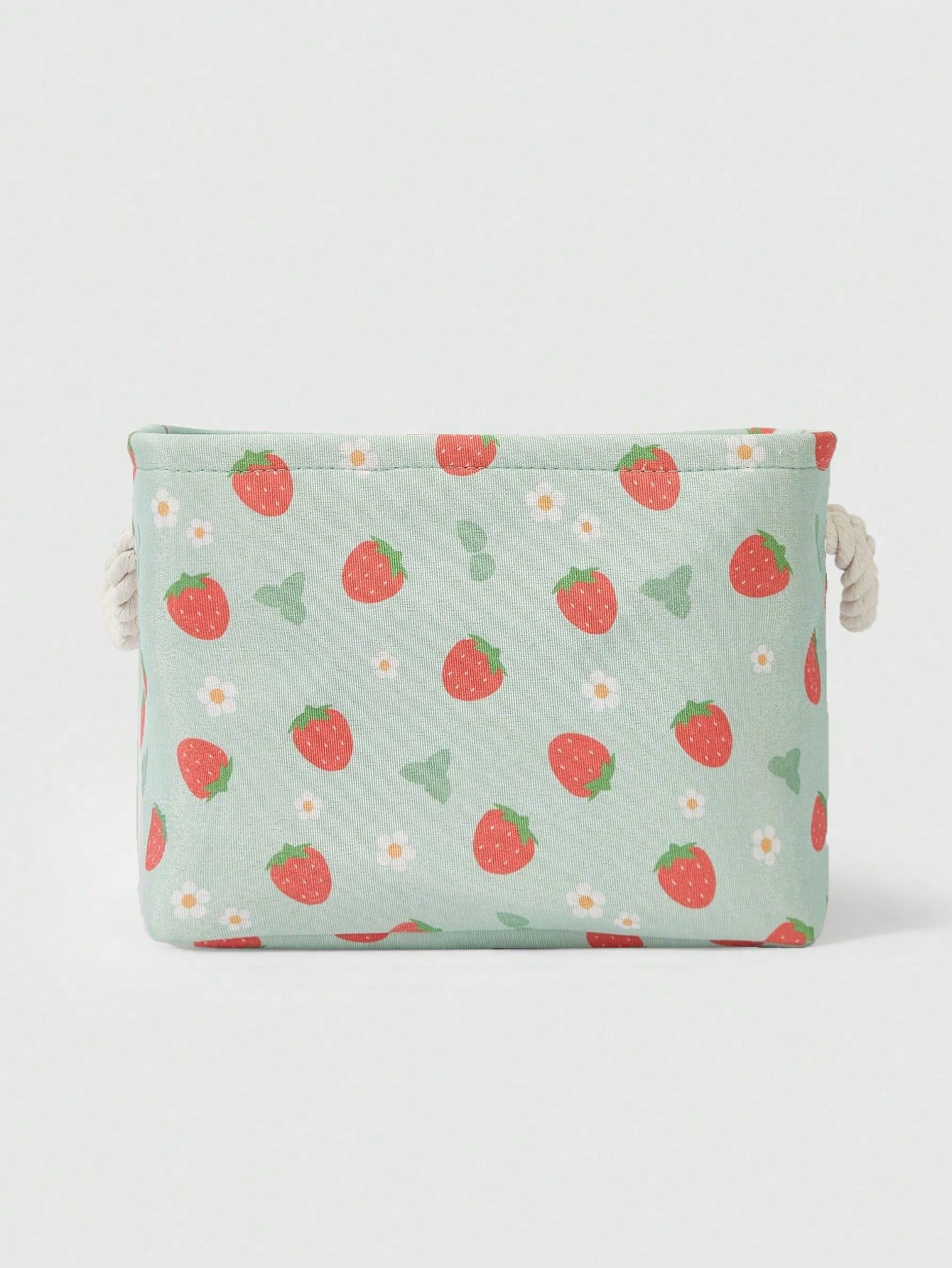 Kawaii Cesta de almacenamiento gruesa y duradera con diseño de estampado de fresa de dibujos animados