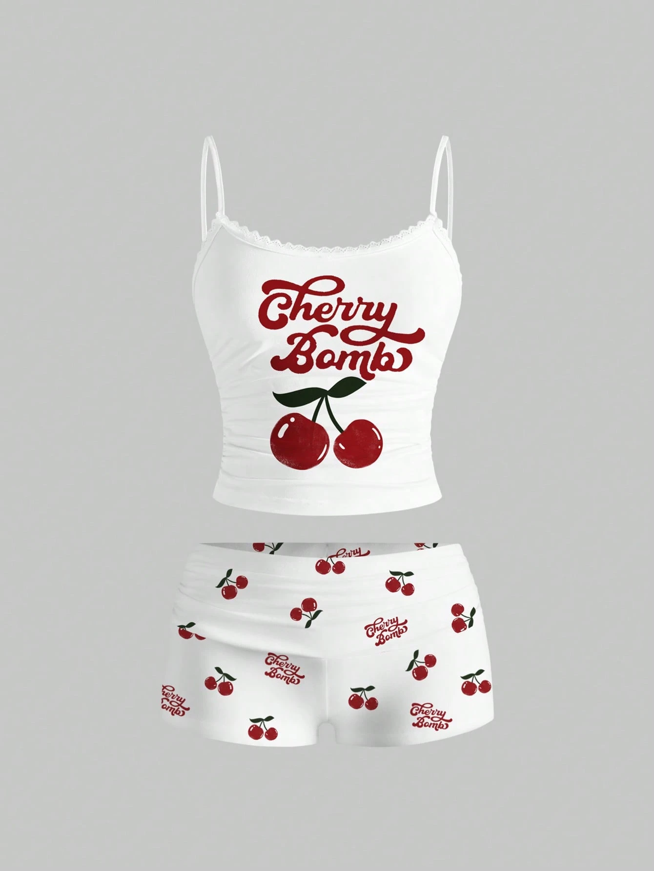Kawaii Conjunto de 2 piezas de camiseta y pantalones cortos con parches, estilo lindo y juguetón, elegante y sexy para mujeres