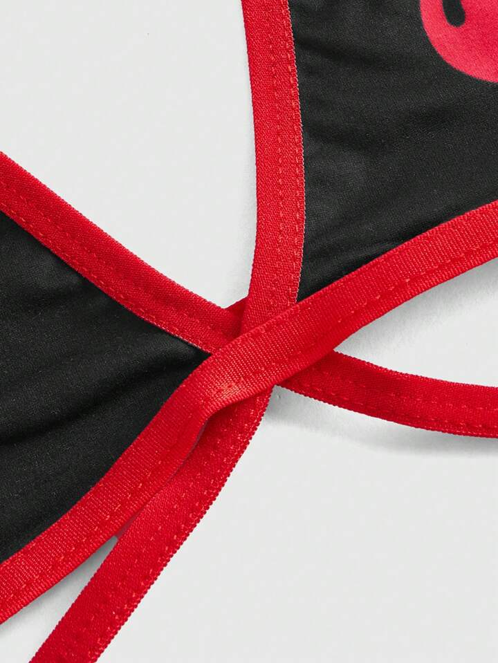 Kawaii Sujetador con estampado de cereza con tira cruzada unido en contraste halter
