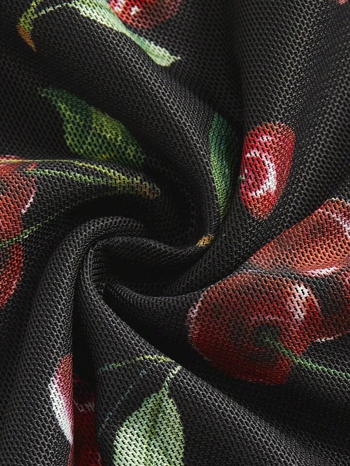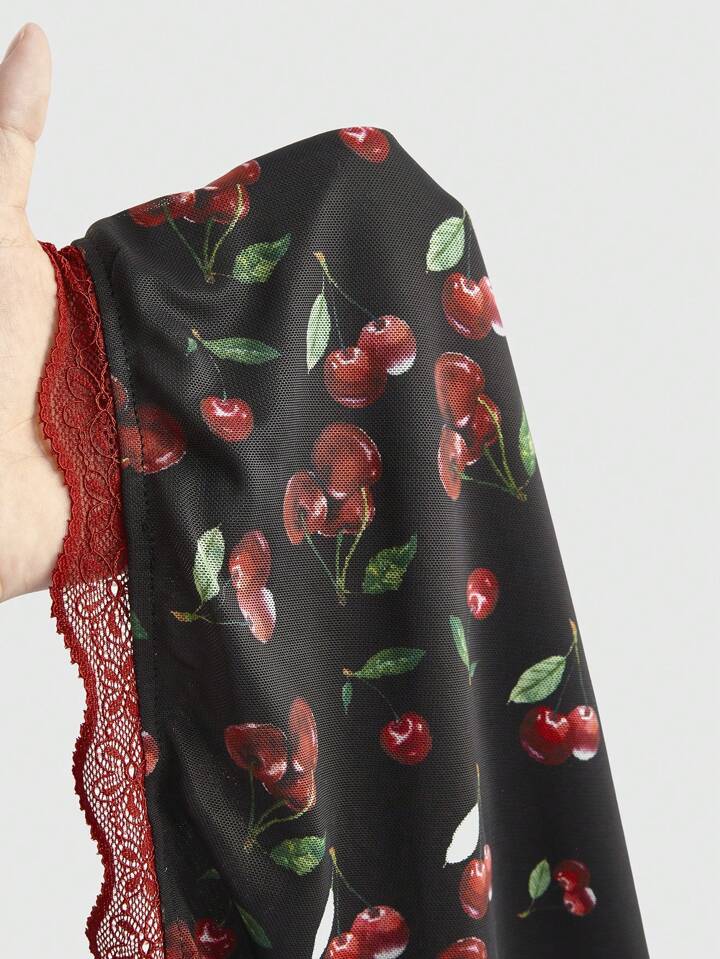 Kawaii Vestido Con Cuello Halter De Encaje Con Estampado De Cereza Y Detalles De Encaje