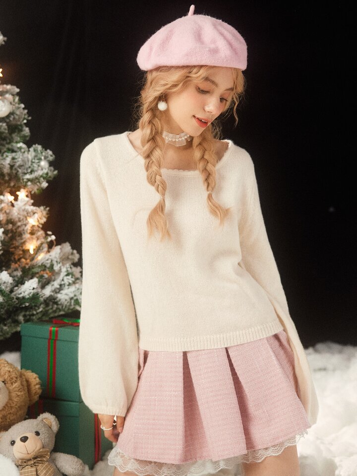 Kawaii Jersey Navidad unicolor de hombros caídos