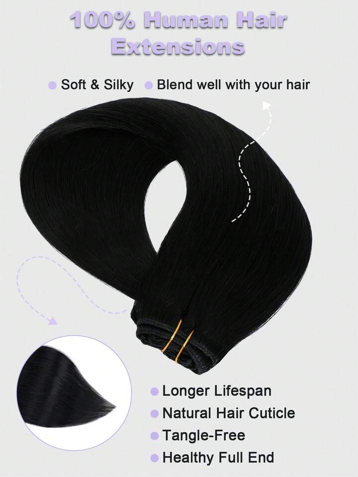 Kawaii Extensiones de cabello humano real con clip, extensiones de cabello humano Remy con clip para mujeres, cabello humano natural 120g 7 piezas