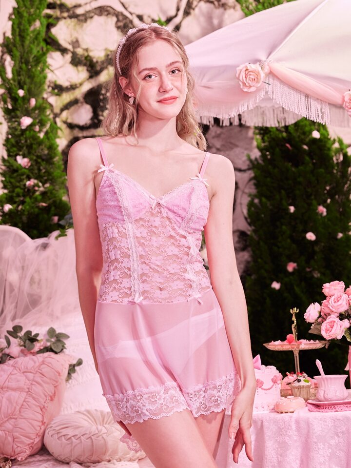Kawaii Tanga con encaje en contraste con diseño de lazo Babydoll &