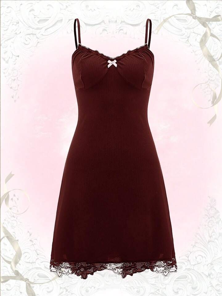 Kawaii Vestido De Tirantes Con Encaje De Contraste