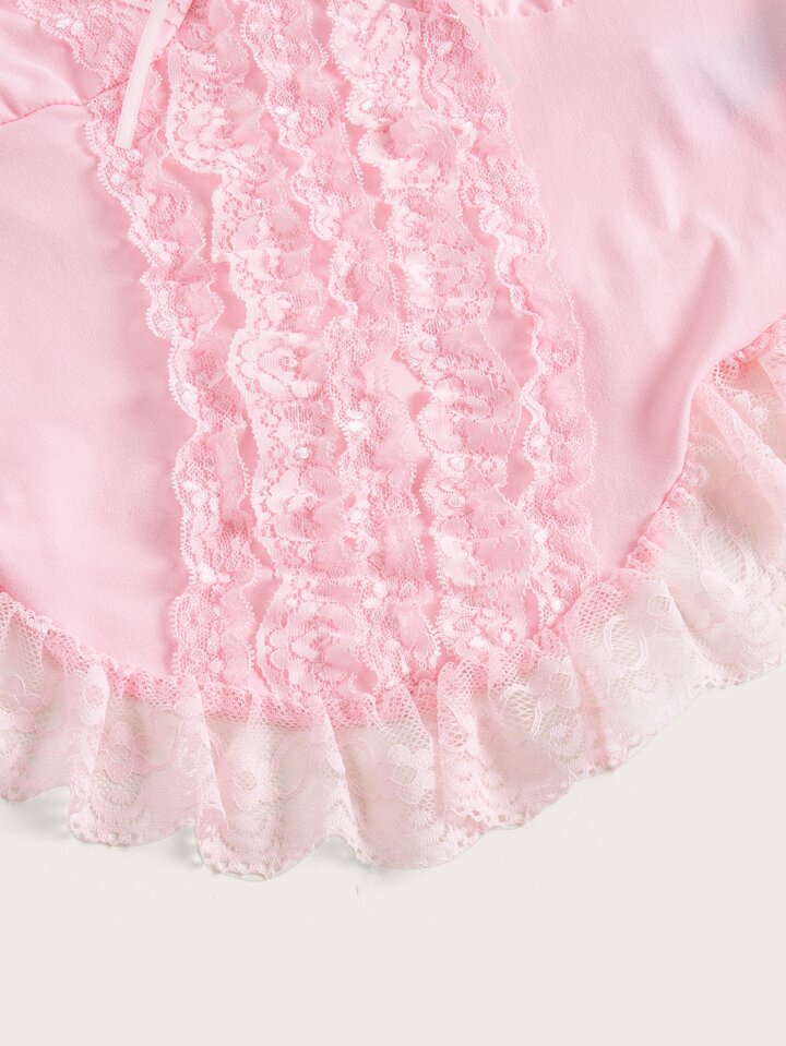 Kawaii Top de tirantes con encaje en contraste