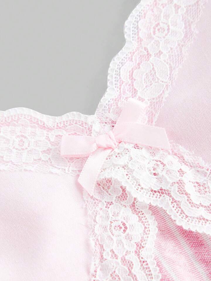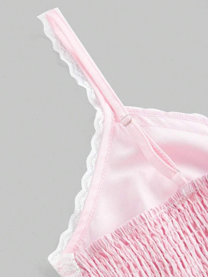 Kawaii Top de tirantes con encaje en contraste