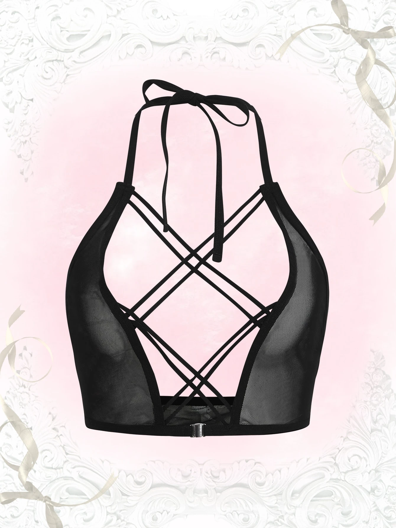 Kawaii Lencería Sexy para Mujeres Cruzado Abertura Nudo Liso