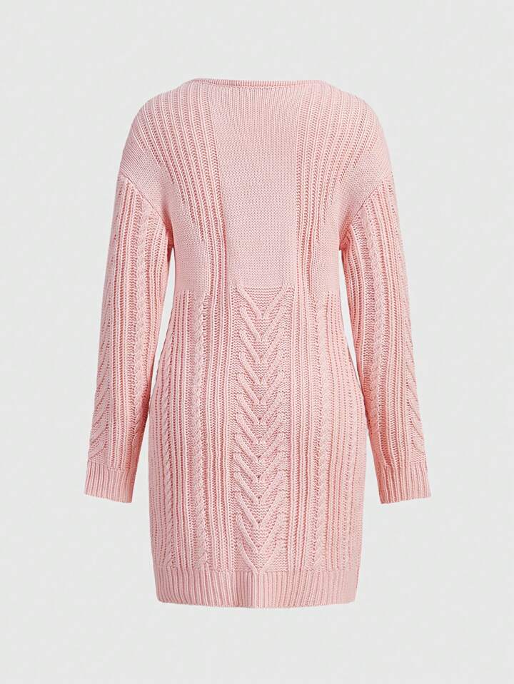 Kawaii Vestido de punto con abertura tejido de cable sin pañuelo