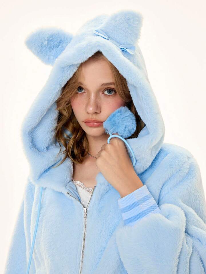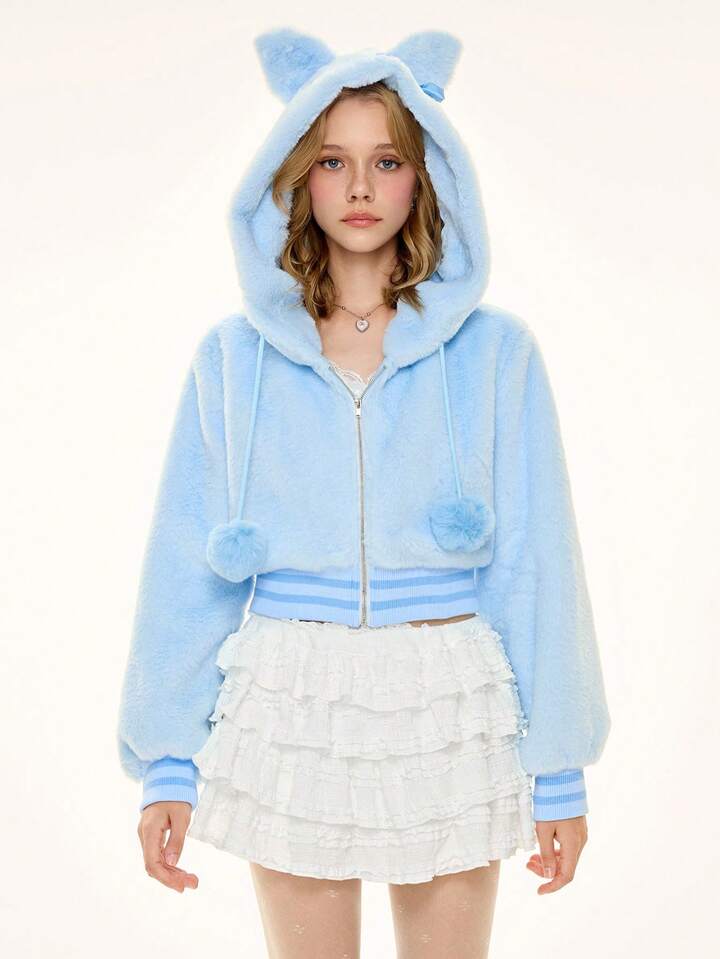 Chaqueta corta de mujer con orejas de gato 3D de peluche estilo Kawaii