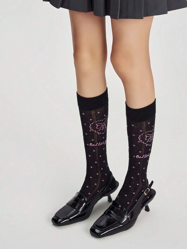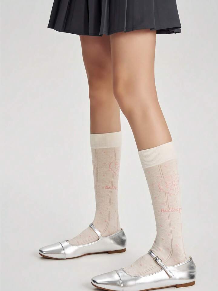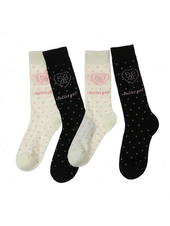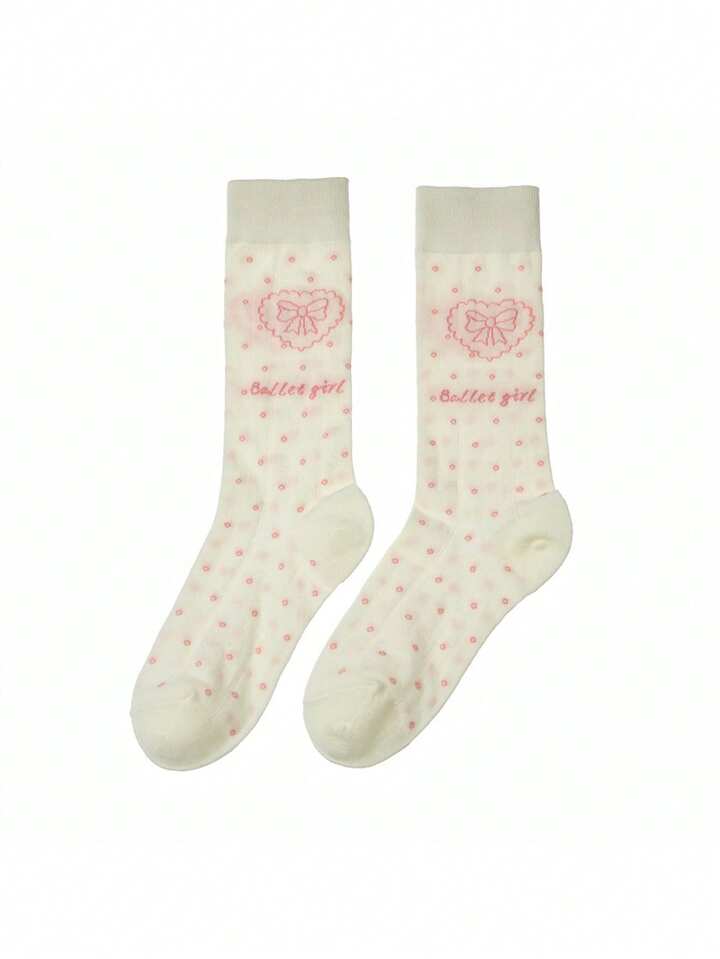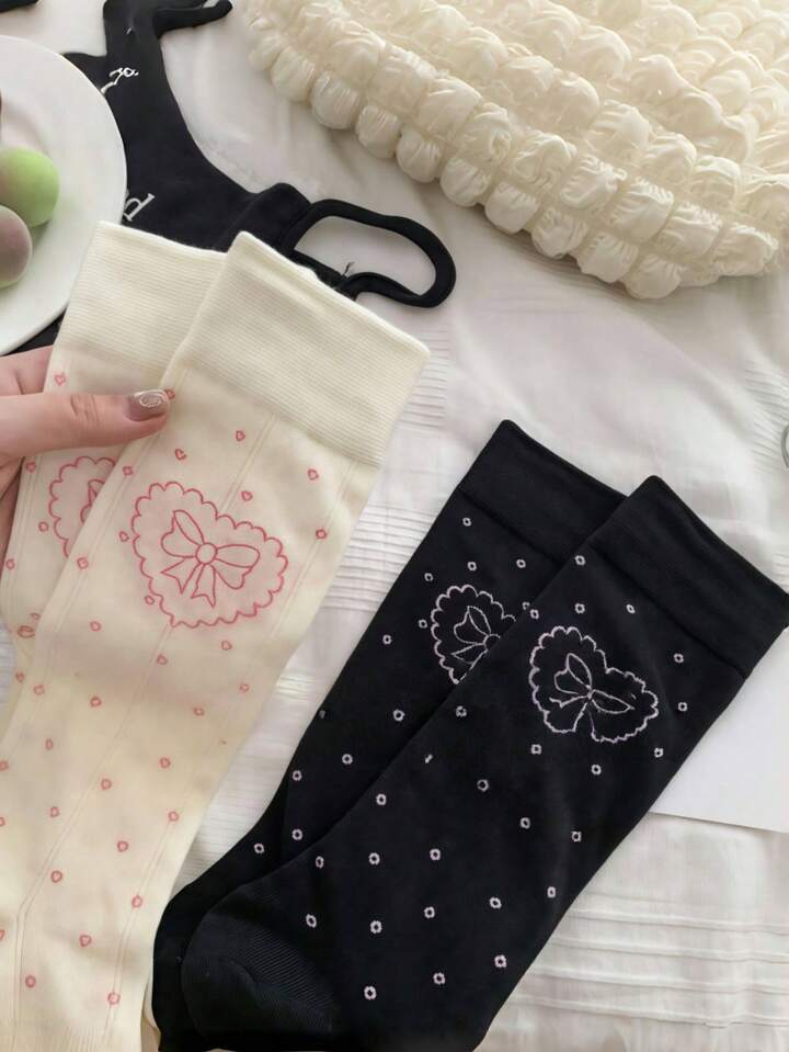 Kawaii Calcetines a media pantorrilla impresos con lunares, corazones y lazos, dulces y casuales, estilo lolita, versátiles