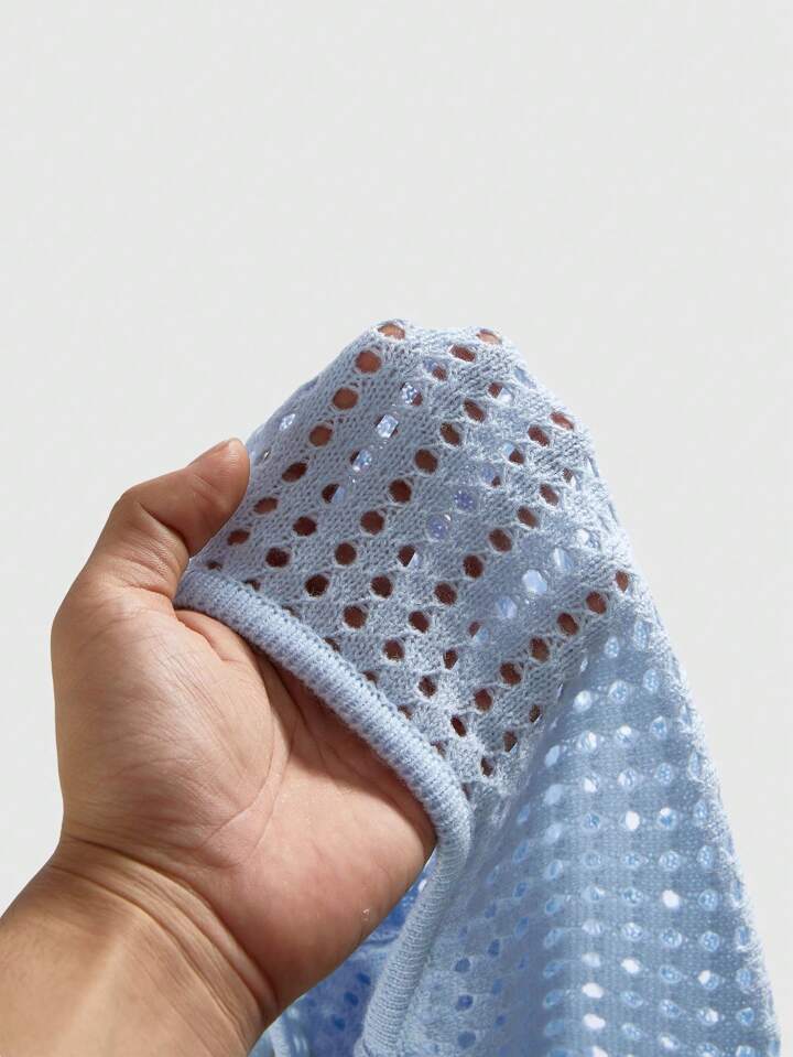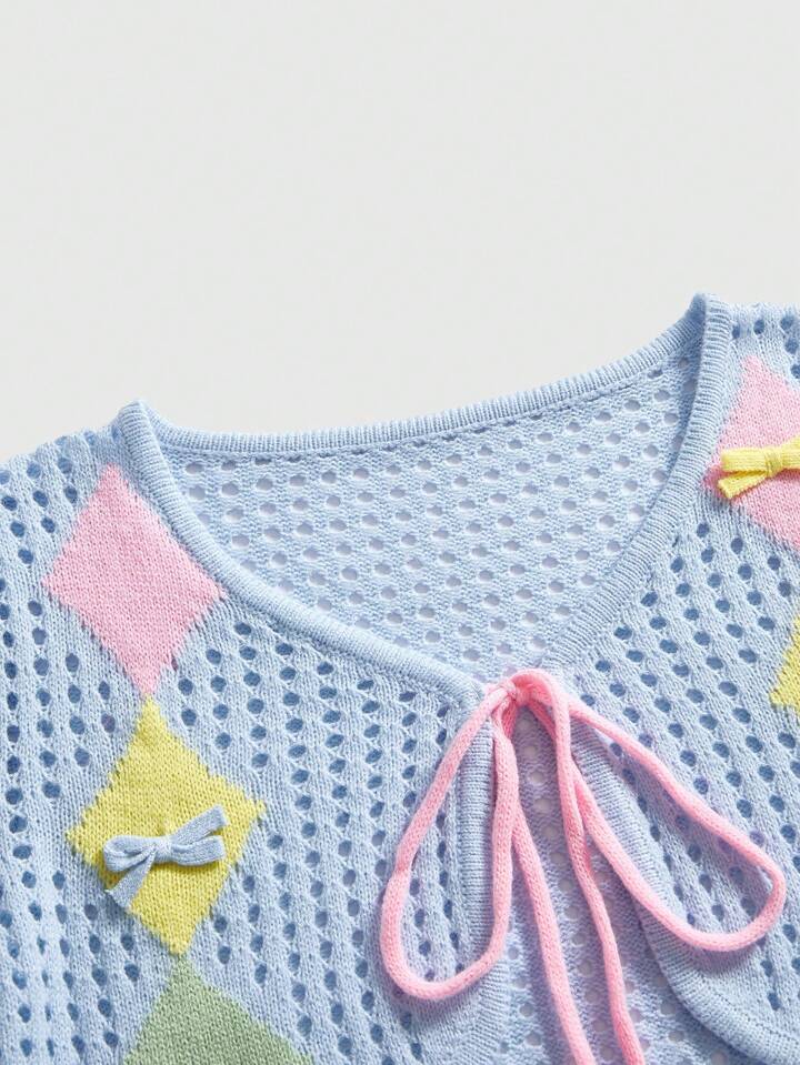 Cárdigan tejido ligero y abierto al frente con lazo adorable y diseño calado, estilo Kawaii