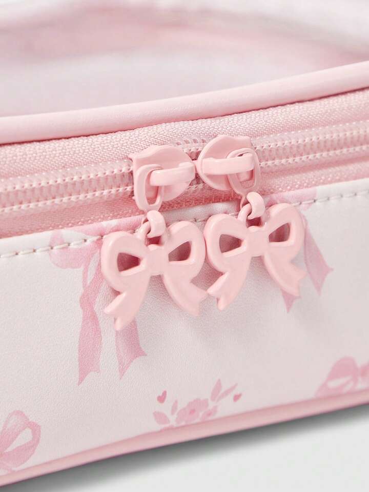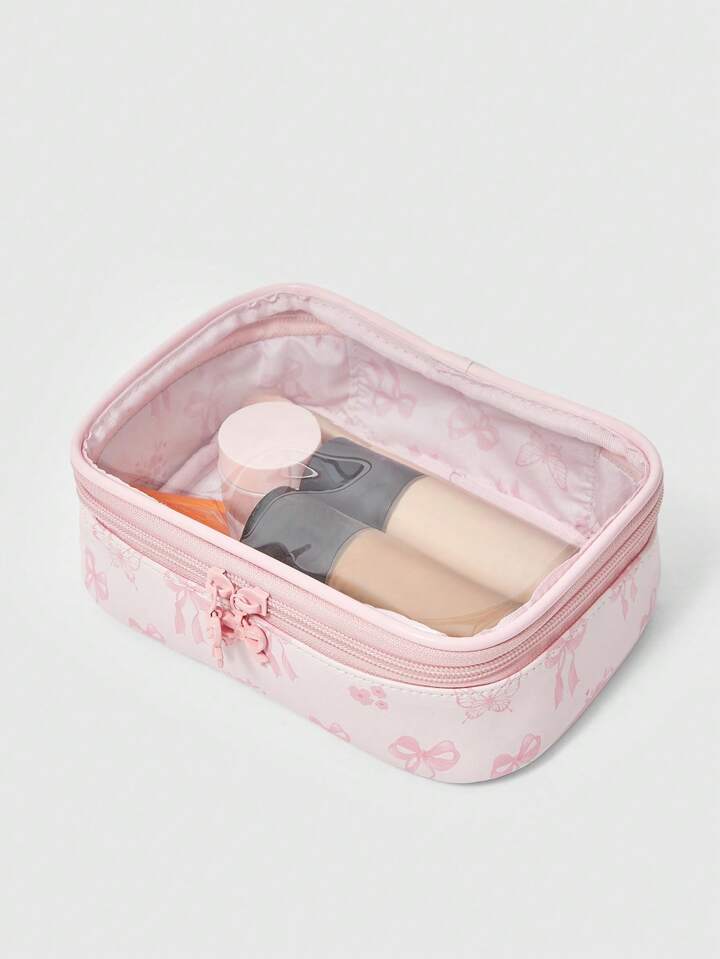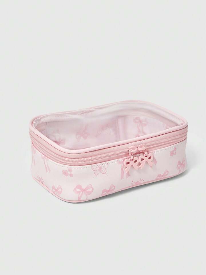 Kawaii Bolsa de maquillaje transparente con estampado de mariposas y efecto de empalme, organizador portátil cuadrado para artículos de tocador, Artículo n.º 1085369