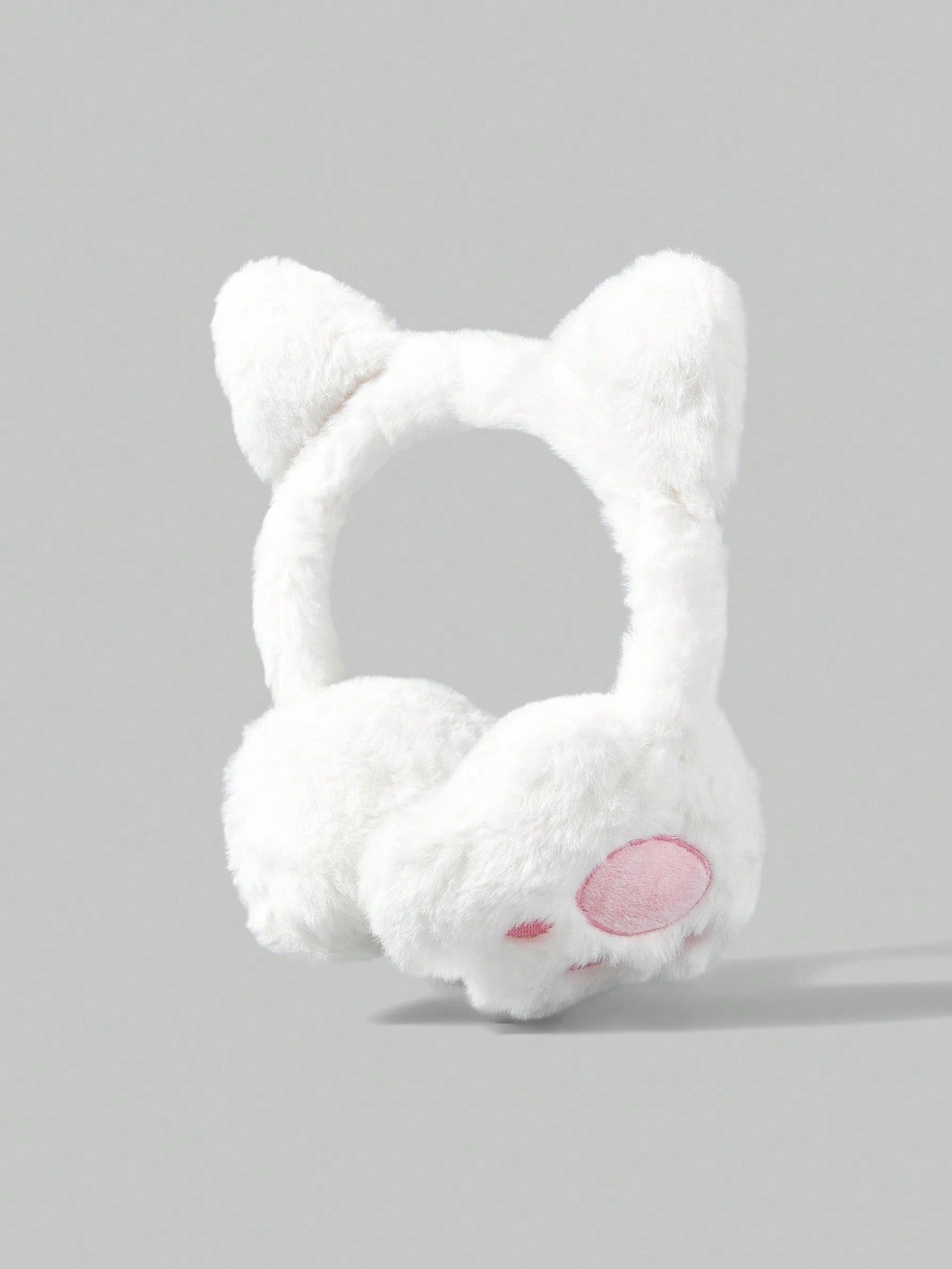 Kawaii Orejeras de peluche con diseño de pata y oreja de gato, cálidas y gruesas de felpa para cosplay, uso casual al aire libre en otoño/invierno