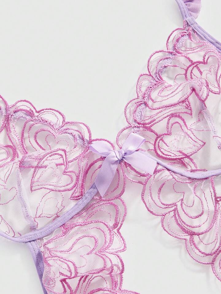Kawaii Mono sexy con aros, bordado de corazón y ribete de encaje, estilo muñeca, para el Día de San Valentín