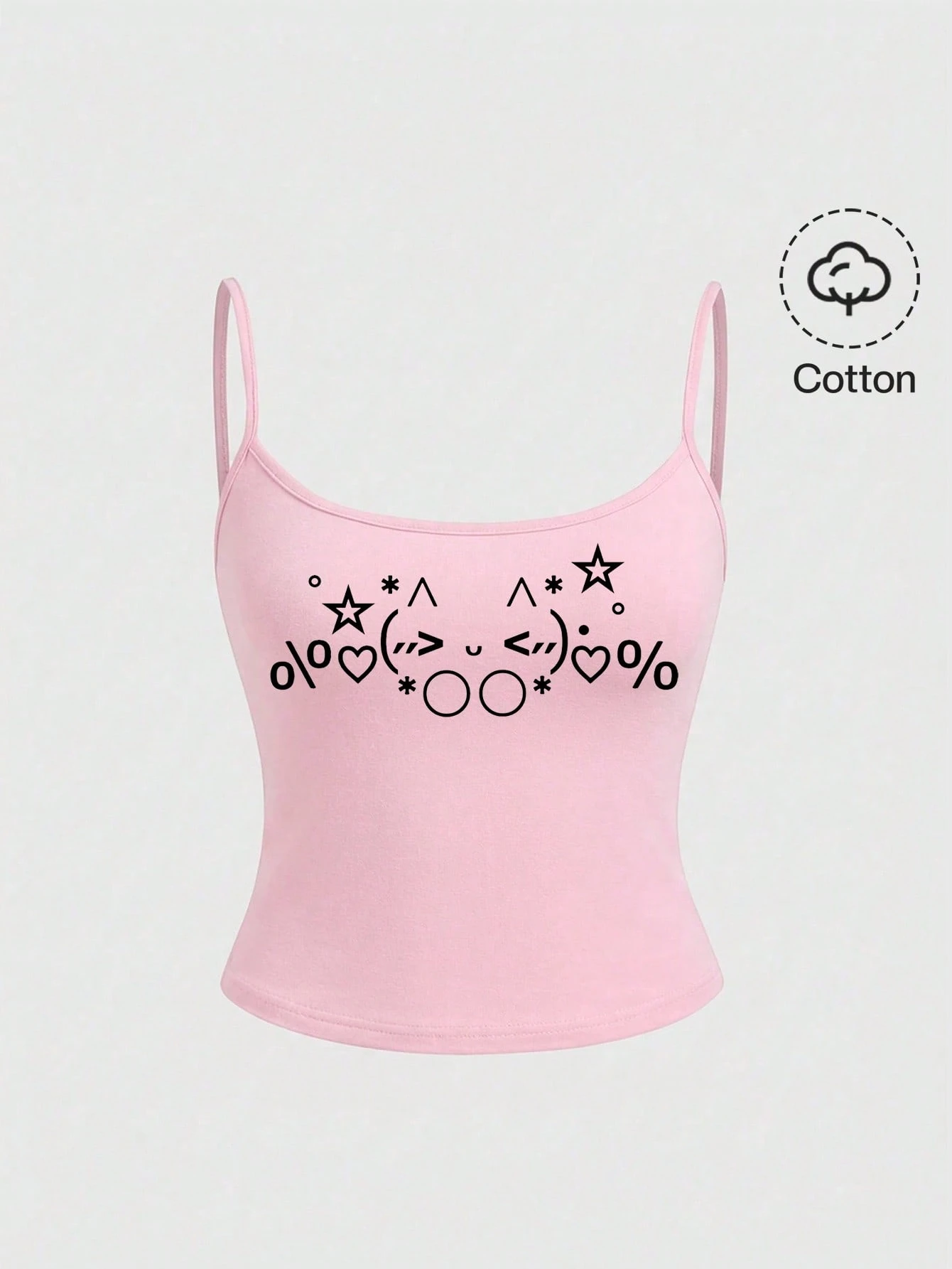 Kawaii Camiseta de tirantes sexy con emoticono vintage Y2K para mujer