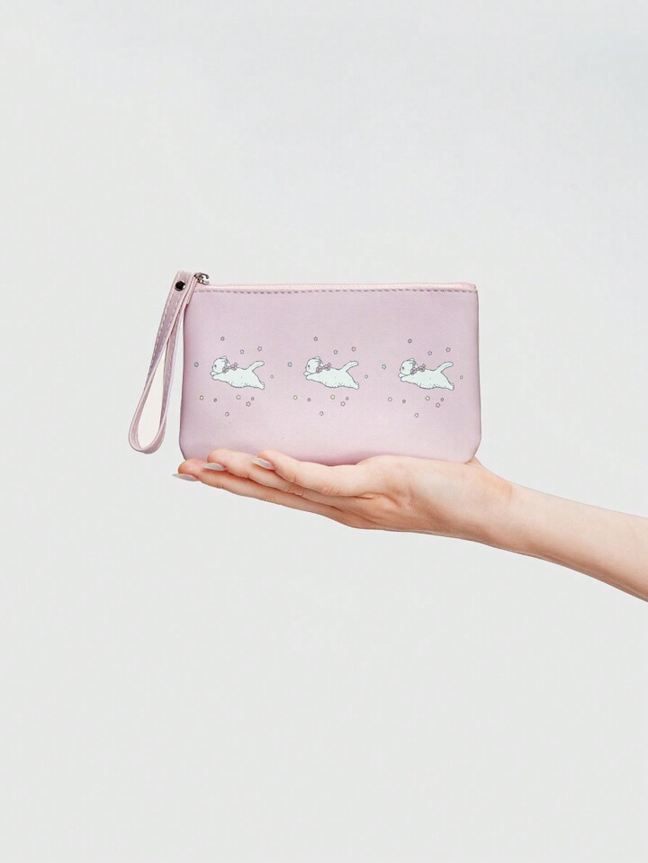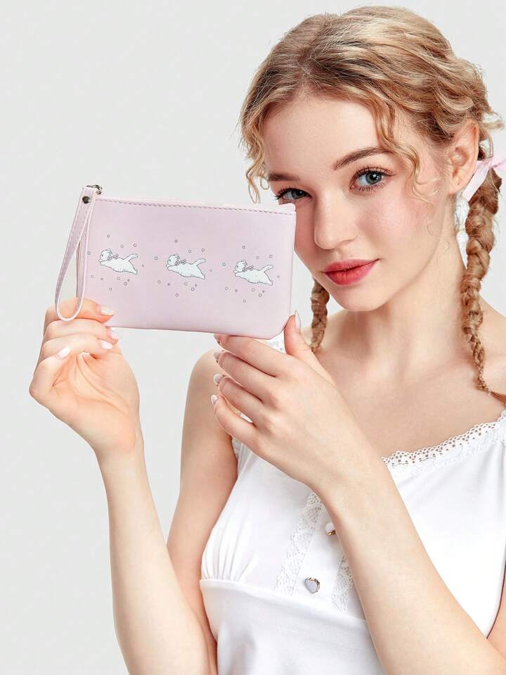 Kawaii Lindo bolso de cosméticos de capacidad grande y grueso impreso por completo con patrón de gato para mujeres