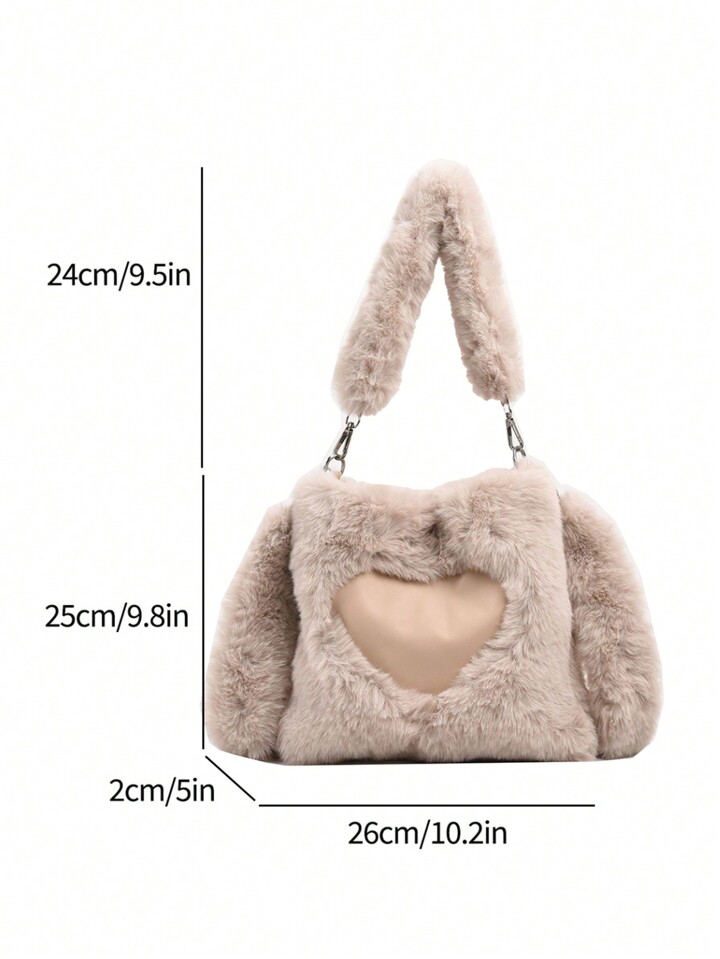 Kawaii Lindo Bolso De Mano De Peluche En Forma De Corazón Para Mujeres, Bolso Grande De Hombro Y Cruzar El Cuerpo Para Invierno