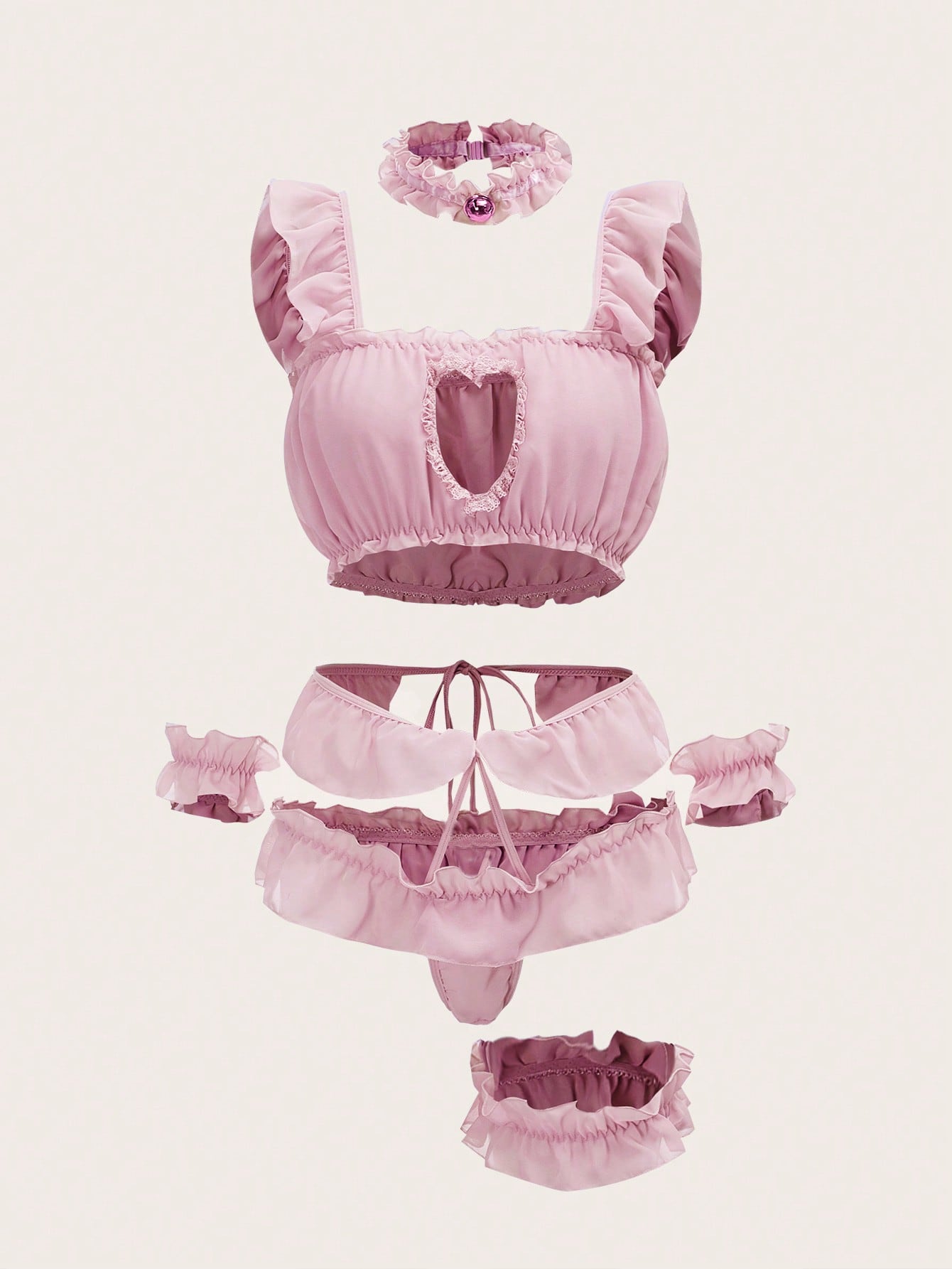 Kawaii Conjunto de lencería con gatito, que incluye gargantilla, tobillos y 2 accesorios para las muñecas, conjunto de ropa interior sexy