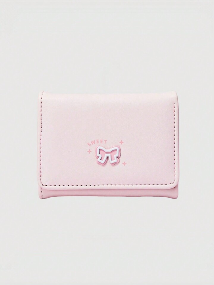 Kawaii Monedero/portatarjetas de color rosa sólido simple con decoración de lazos adorable y bonita para damas, cartera mini, cartera pequeña, cartera mona