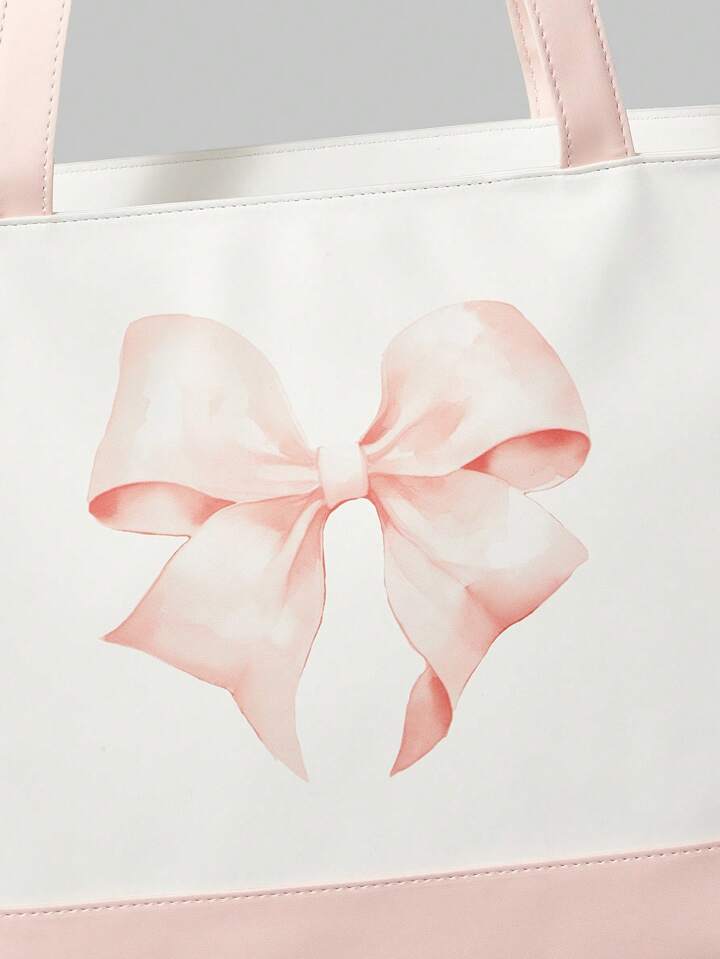 Kawaii Bolso de mano de moda con estampado de gran lazo rosa lindo para mujeres