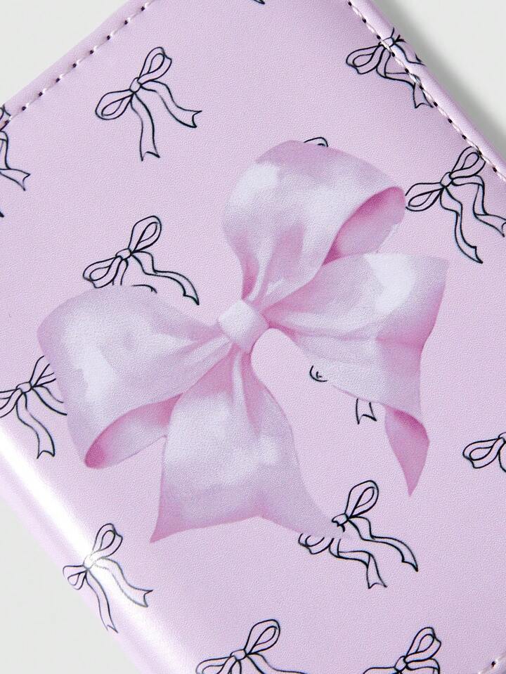 Kawaii Billetera multifunción y multiusos con estampado de lazos, estilo colegial lindo, lazo grande rosa, monedero casual con cremallera