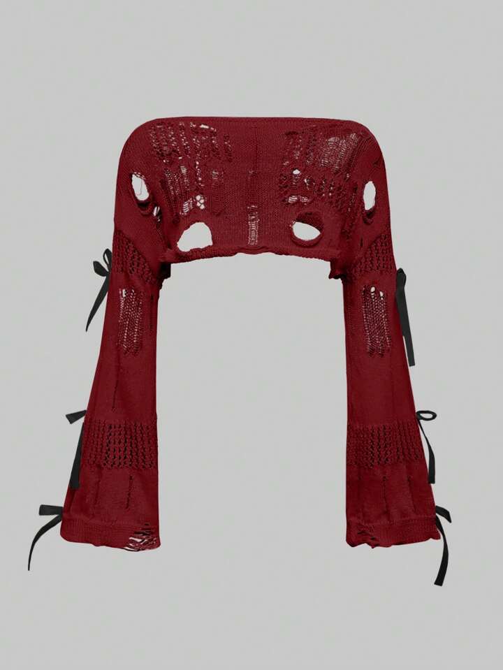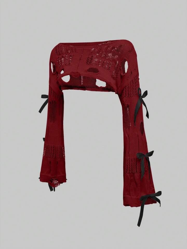 Kawaii Jersey de mujer con cuello asimétrico, lazada, efecto abombado y tejido suelto y suave