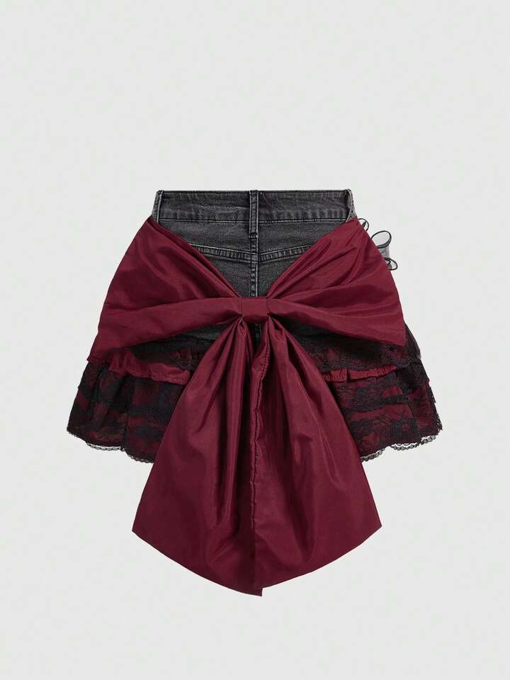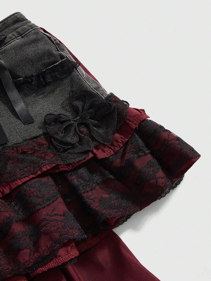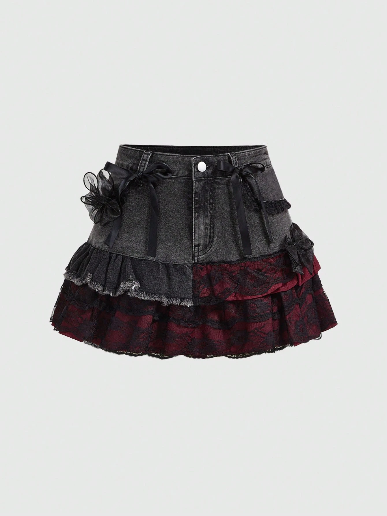 Kawaii Falda vaquera mini con dobladillo en forma de pastel, linda y dulce para mujer