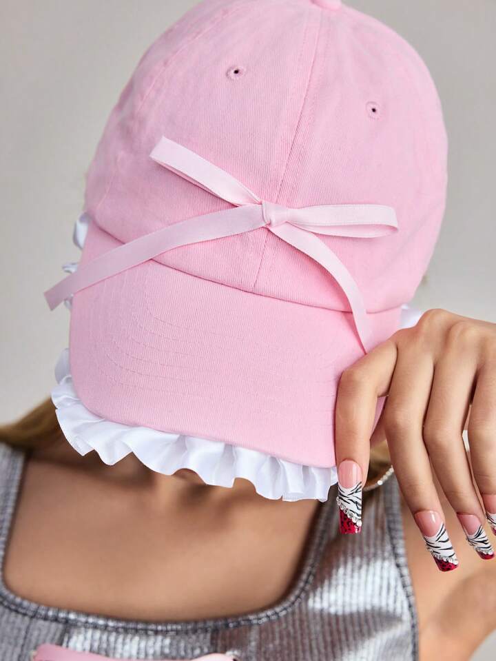 Kawaii Gorra de béisbol de mujer con decoración de lazo, patchwork de encaje, estilo dulce y lindo para el grupo de chicas Y2K