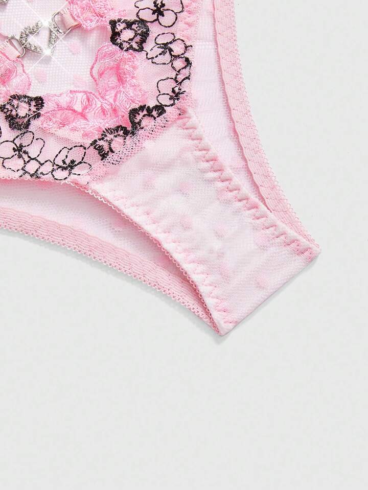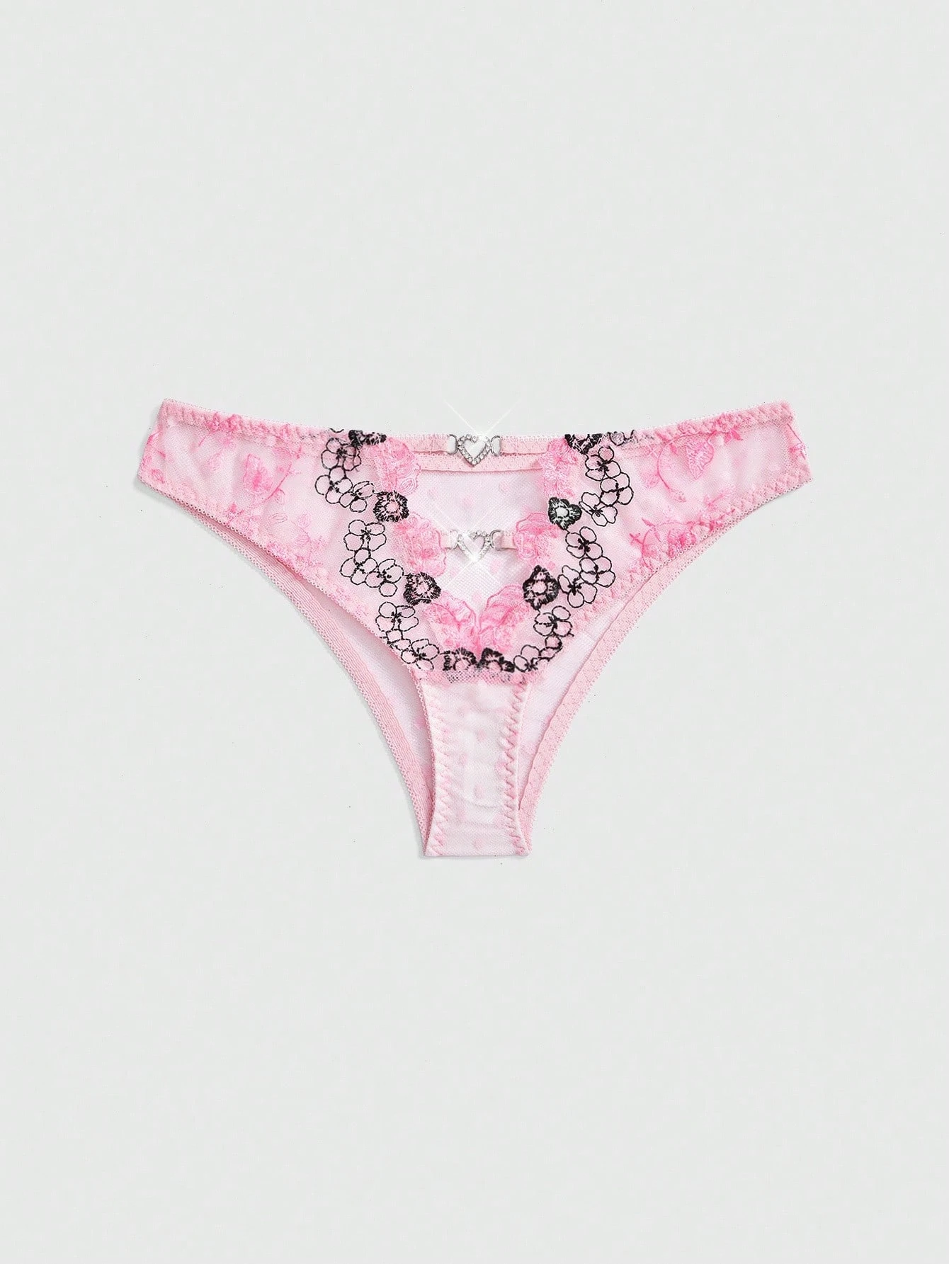Kawaii Bragas de mujer con bordado floral y de corazón, de malla metálica brillante