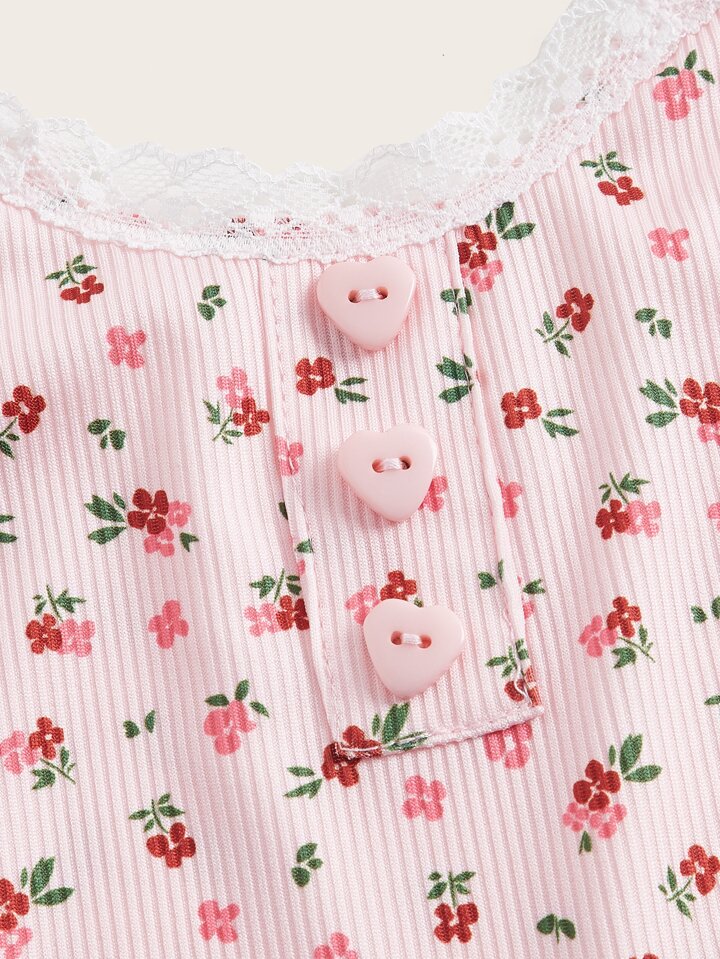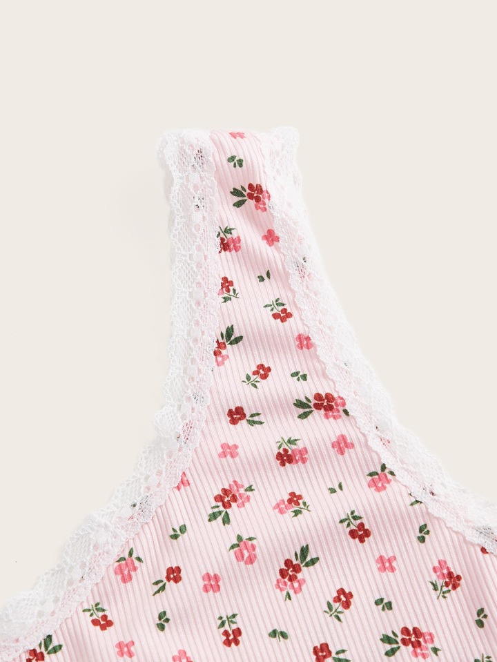Kawaii Camisetas y Tops de Tirantes de Mujer Botón Encaje en contraste Canalé floral de margarita Bohemio