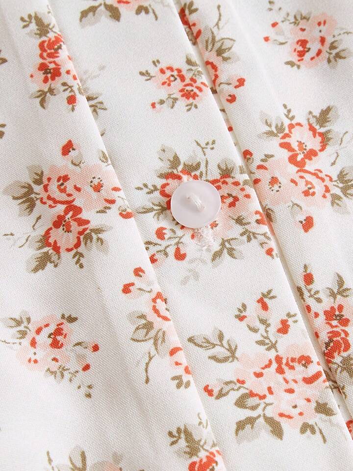 Kawaii Blusa con estampado floral con cordón trasero bajo con fruncido
