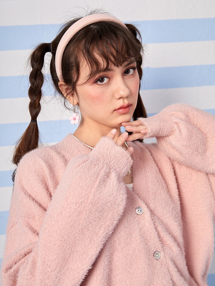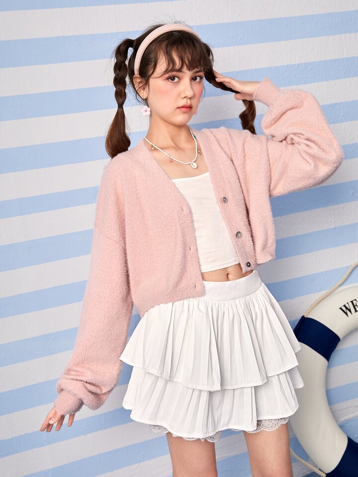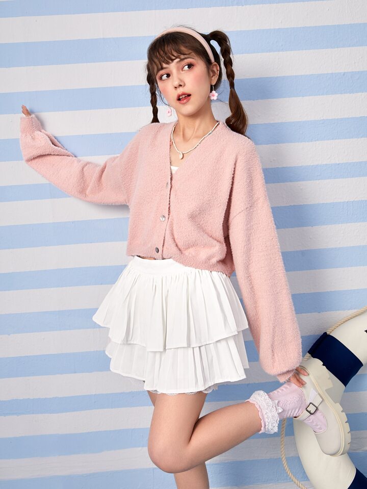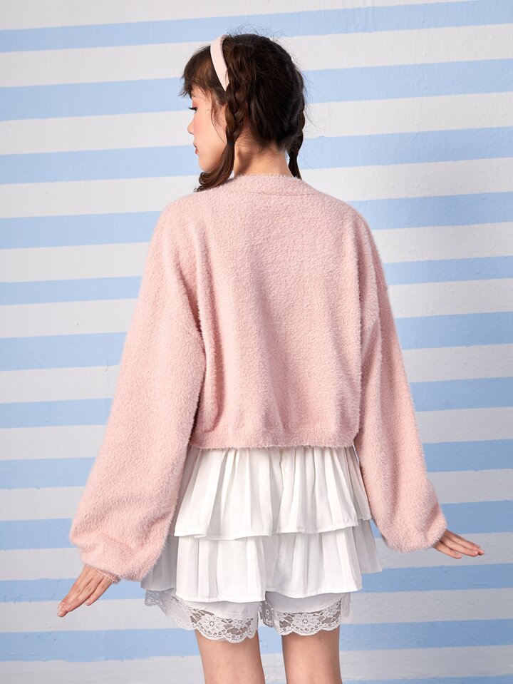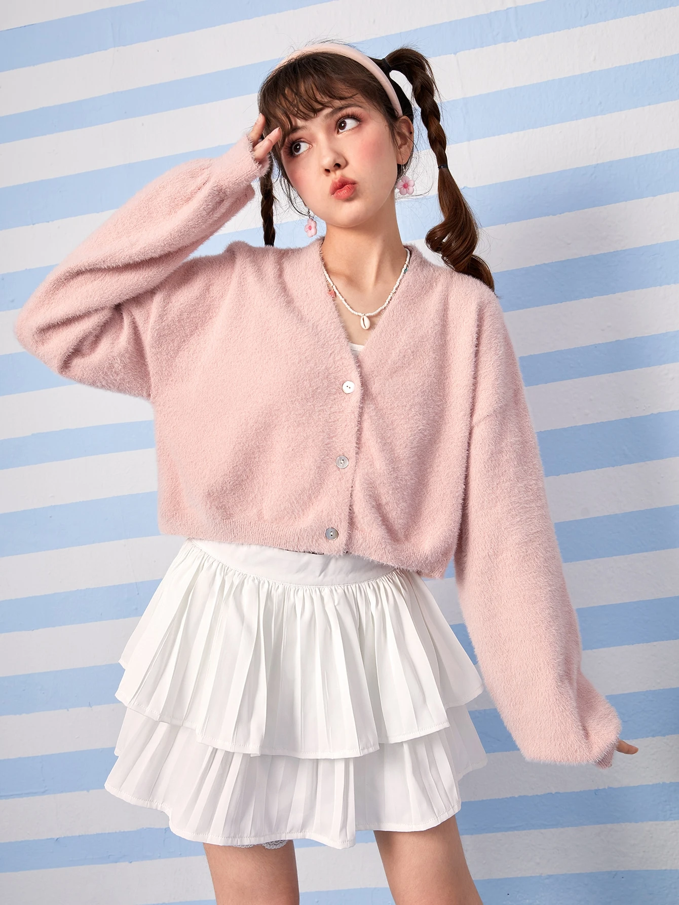 Kawaii Cárdigan de hombros caídos tejido mullido