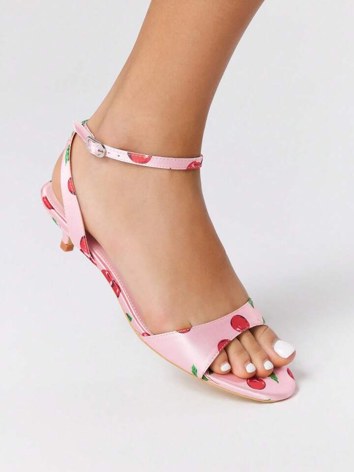 Kawaii Sandalias de tacón de gatito elegantes para mujer con estampado de flores de cerezo