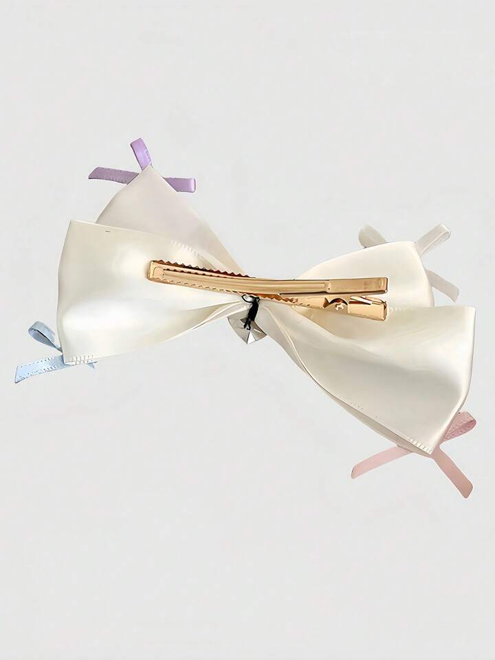 Kawaii Elegante clip de pelo con lazo de tela en forma de corazón, con rinostonte, clip simple de flecos, pasador de princesa, clip de pelo versátil