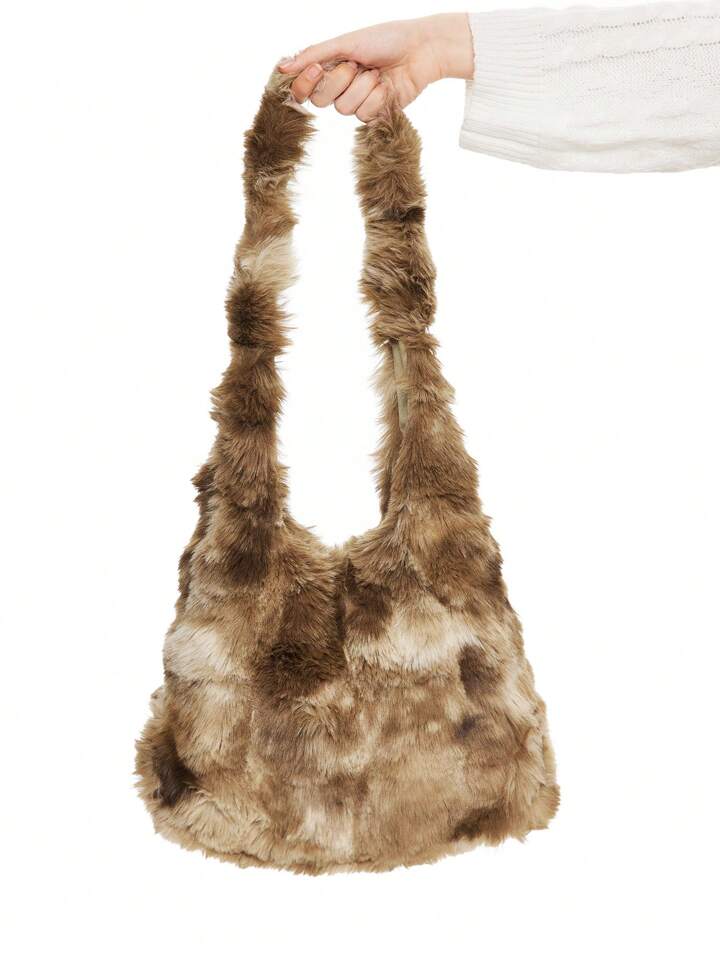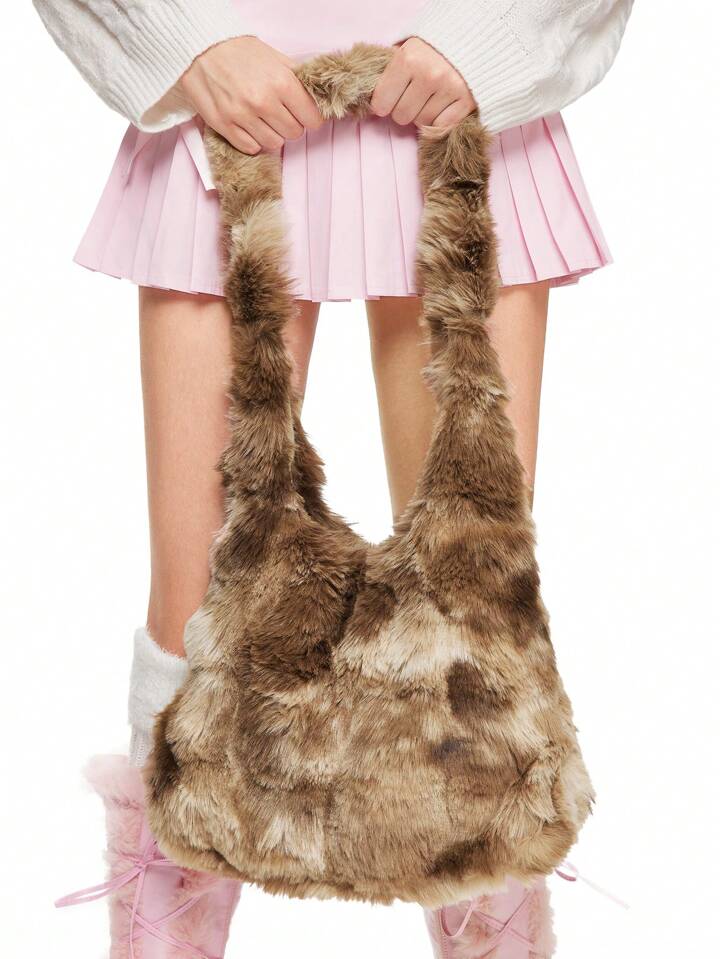 Kawaii Bolso de hombro de peluche degradado de moda para mujeres, otoño/invierno