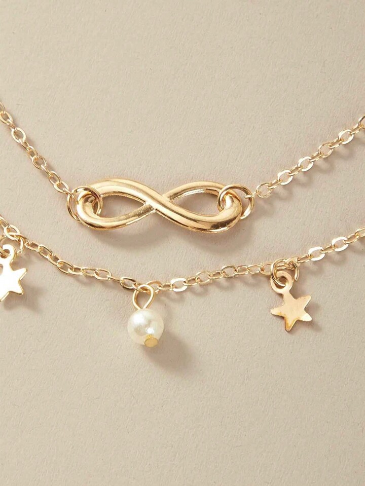 Kawaii Pulsera de tobillo de doble capa de perlas con diseño de estrella y octagrama, elegante y único en moda
