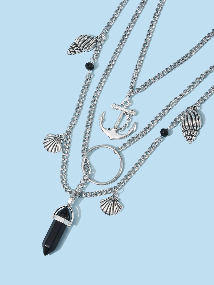 Kawaii Collar de cadena a capas geométrico & con diseño de concha