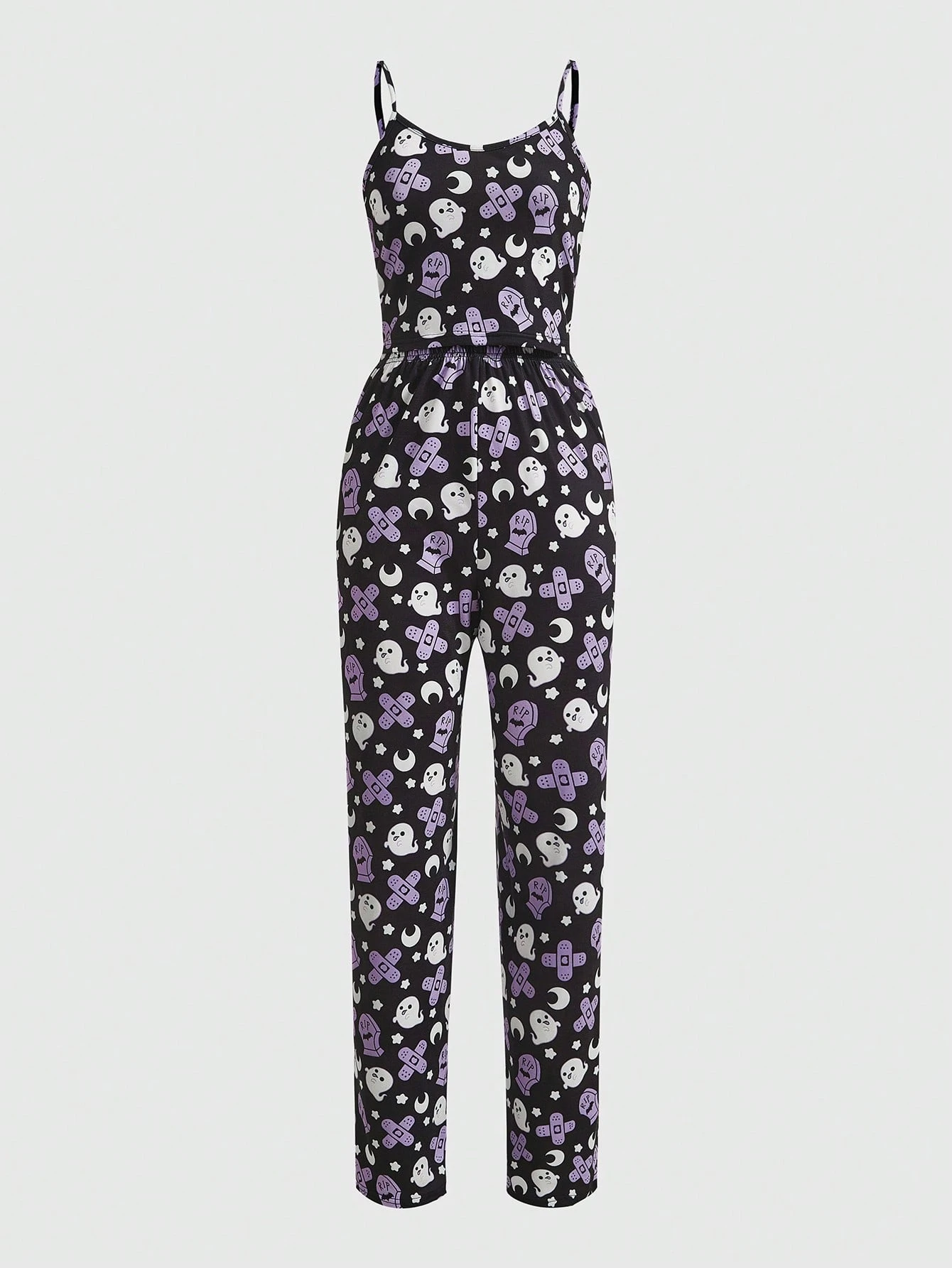 Kawaii con estampado de halloween Top de tirantes con pantalones Conjunto de pijama
