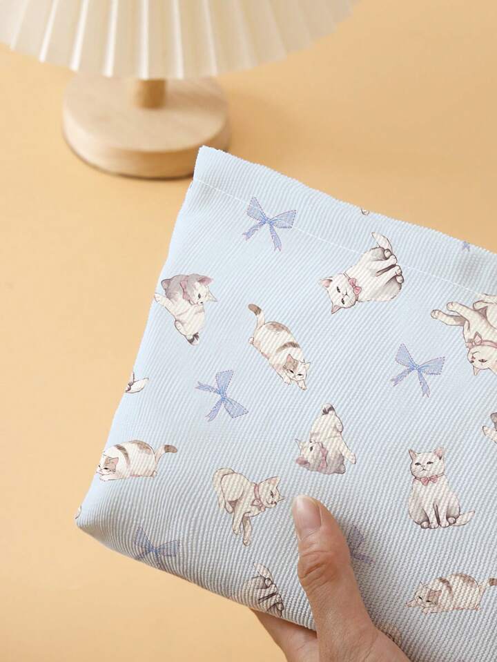 Kawaii Bolsa De Cosméticos De Pana Con Estampado A Doble Cara Y Estampado De Gato Dibujado A Mano