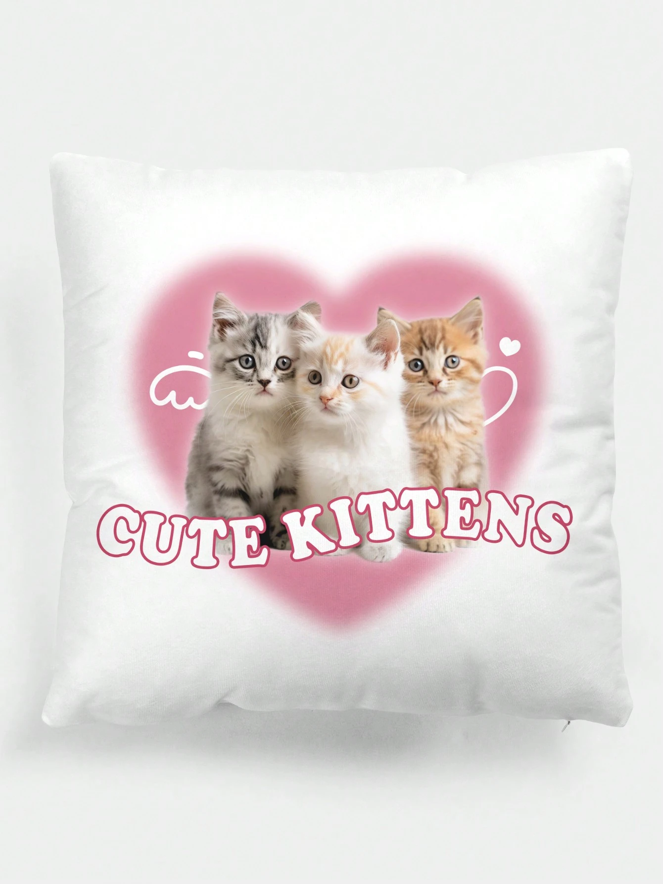 Kawaii Funda de cojín con corazón & con estampado de gato